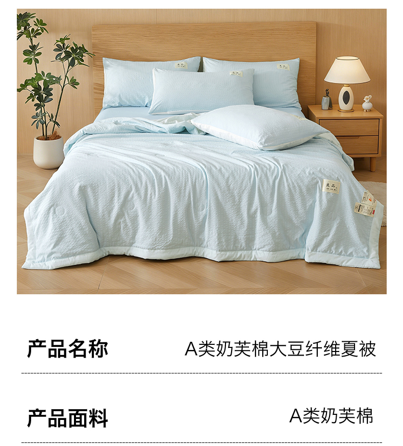 • 91家纺网 家纺一手货源 找家纺 (总)招财星家纺 2026新款A类奶芙棉大豆夏被四件套空调被被子夏凉被芯薄被子(带质检报告买家秀),奶芙芙-浅蓝,奶芙芙-果绿,奶芙芙-米白,奶芙芙-浅灰,奶芙芙-粉玉