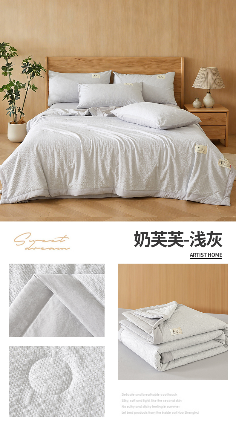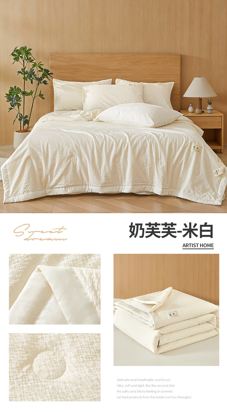 • 91家纺网 家纺一手货源 找家纺 招财星家纺 2026新款A类奶芙棉大豆夏被四件套空调被被子夏凉被芯薄被子(带质检报告买家秀) 奶芙芙-米白