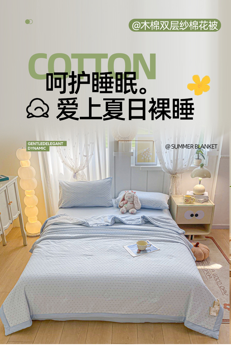 (总)爱屋及屋 2026新款小清新双层纱宽包边棉花被夏凉被空调被夏被,春日小猫,动感星星,繁花-蓝,花影,花之兔,蓝点点,蓝色小丫,萌宠集,奶油块块,苹果猫,像素KT,小熊猫,星星小马,云感-蓝,治愈小猫