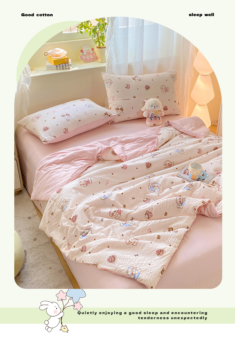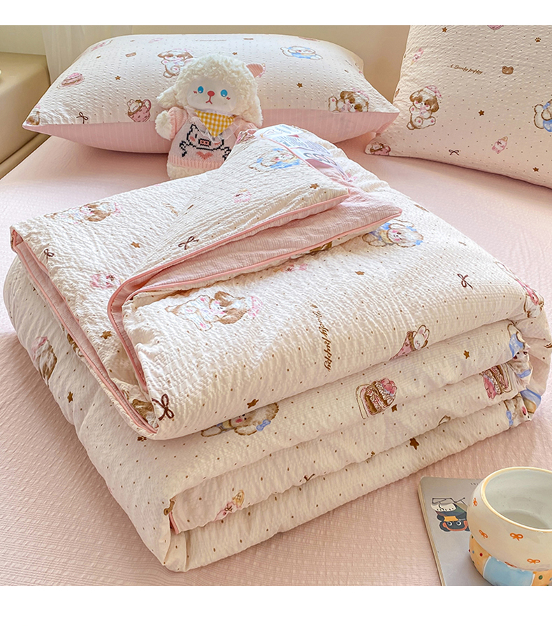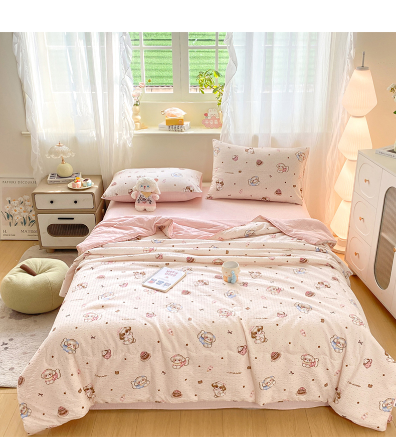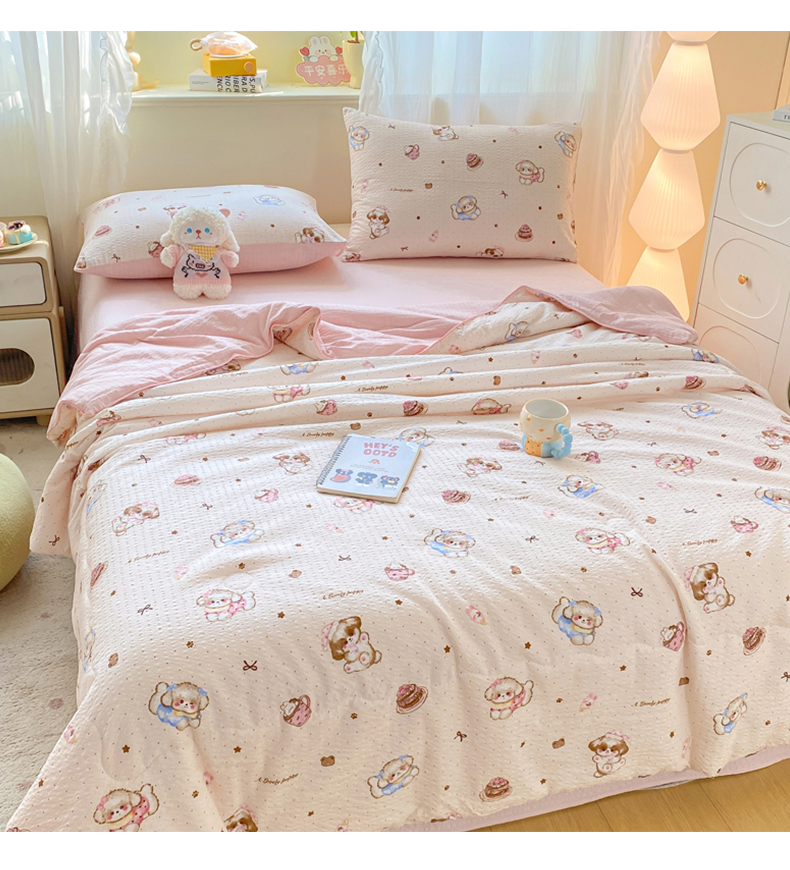 • 91家纺网 家纺一手货源 找家纺 爱屋及屋 2026新款泡芙棉夏被夏凉被空调被四件套 甜品萌狗