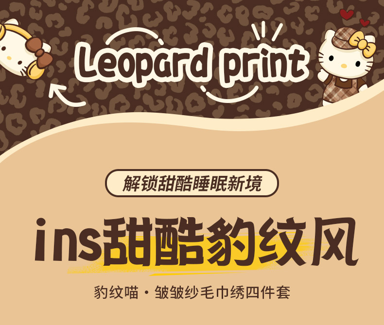 当前位置: 91家纺网 > 商品网购 > 床品套件 > 四件套 > 毛巾绣四件套 > 花伞家居 2026新款皱皱纱毛巾绣豹纹喵四件套含买家秀 星星猫-热情豹纹