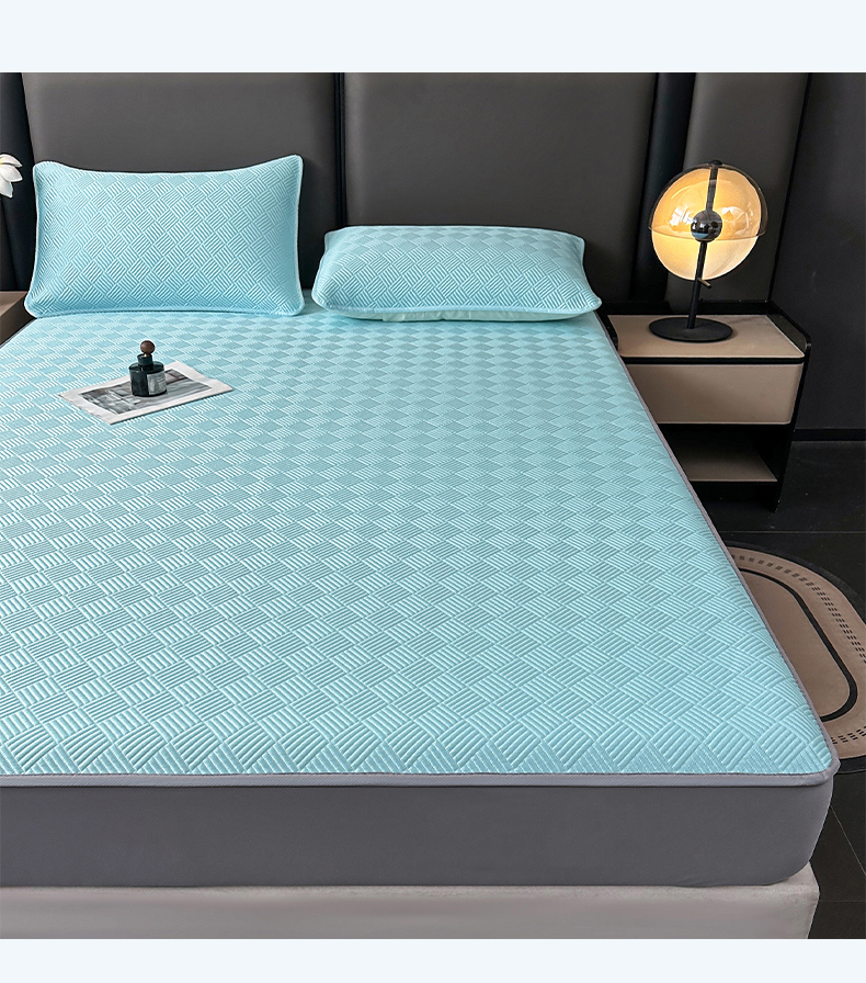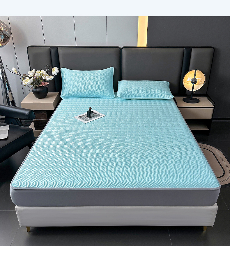 商品名称:乐家欣 2026新款提花凉感床笠款床席款软凉席 床笠款提花-清水蓝