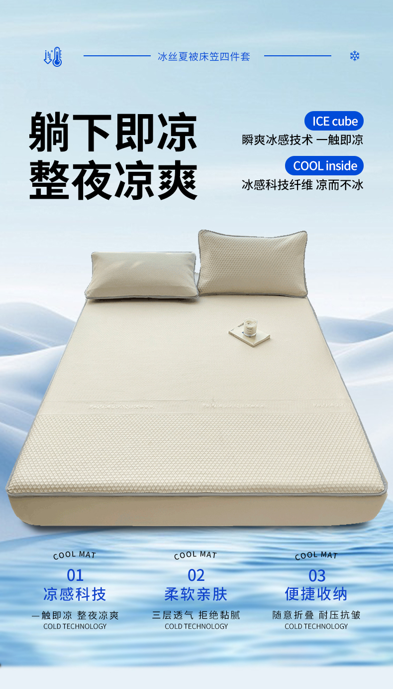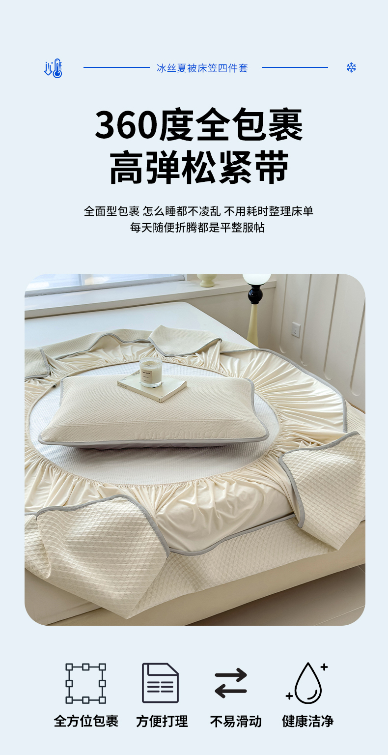 当前位置: 91家纺网 > 商品网购 > 床上用品 > 凉席 > 其他凉席 > 乐家欣 2026新款凉感冰丝夏被床笠四件套 床笠冰丝-奶昔白