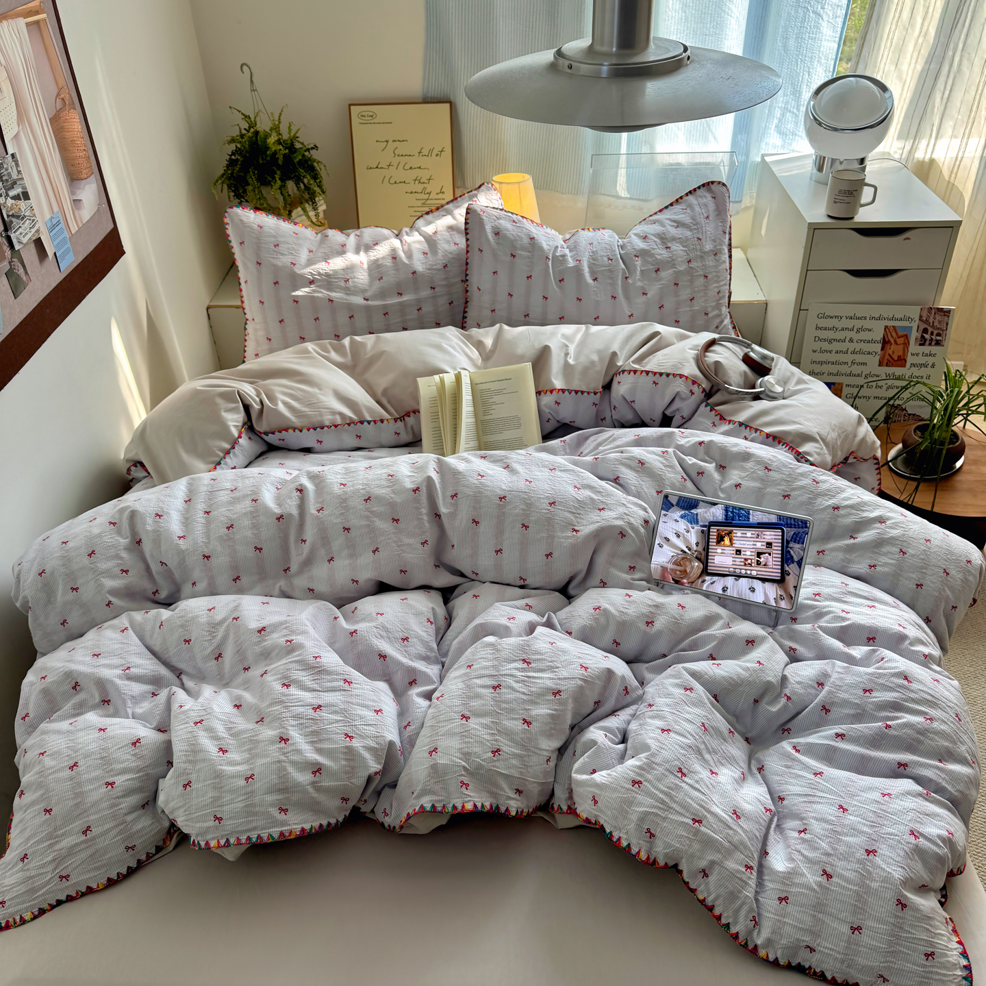 (总)田野 2026新款水洗棉提花人字小清新系列四件套,彩虹糖,草莓奶绿,粉雾细条,红樱漾蓝,晴空蓝条,甜心熊,雾蓝蝴蝶结