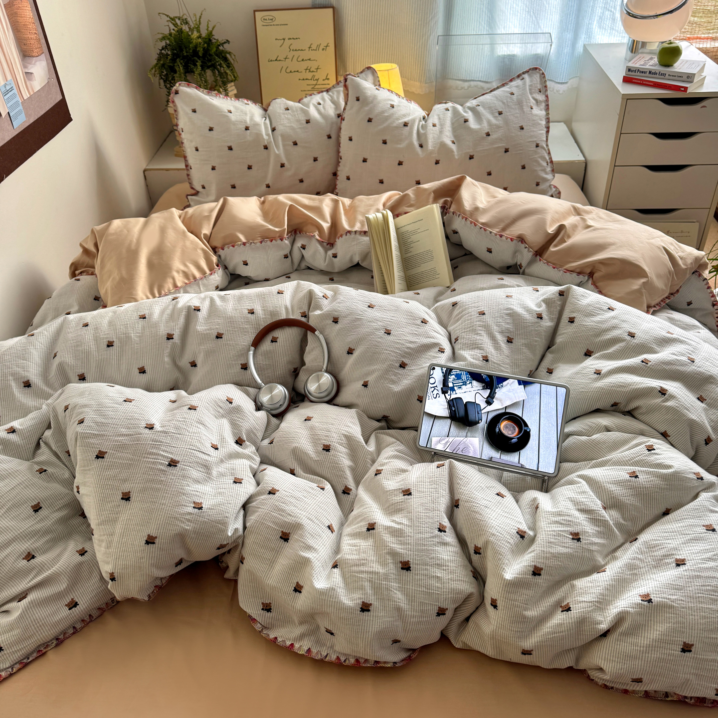 (总)田野2025新款全棉皱皱纱四件套,半夏-粉,半夏-蓝,时予-黄灰,时予-灰绿,时予-桔兰,小半-粉米,小半-绿紫,小半-奶茶棕,小半-亚麻棕
