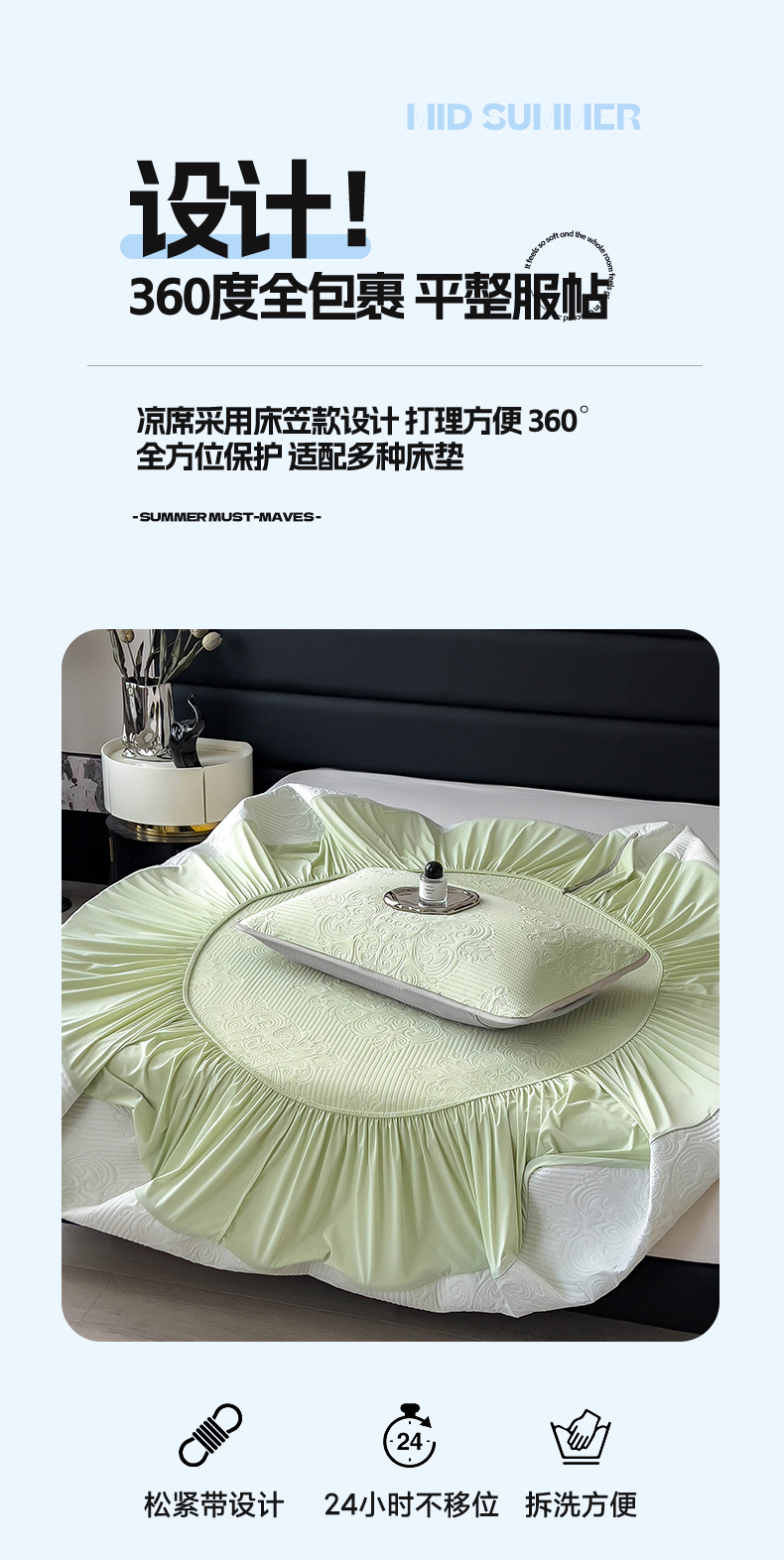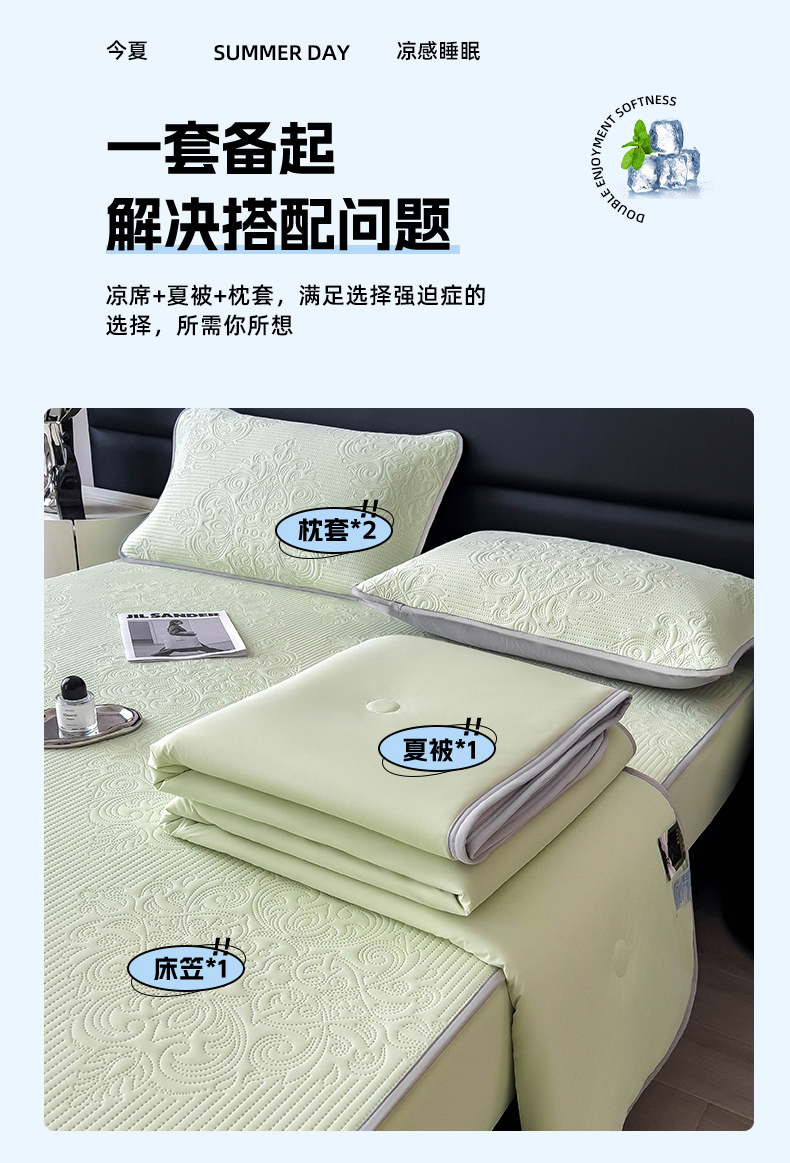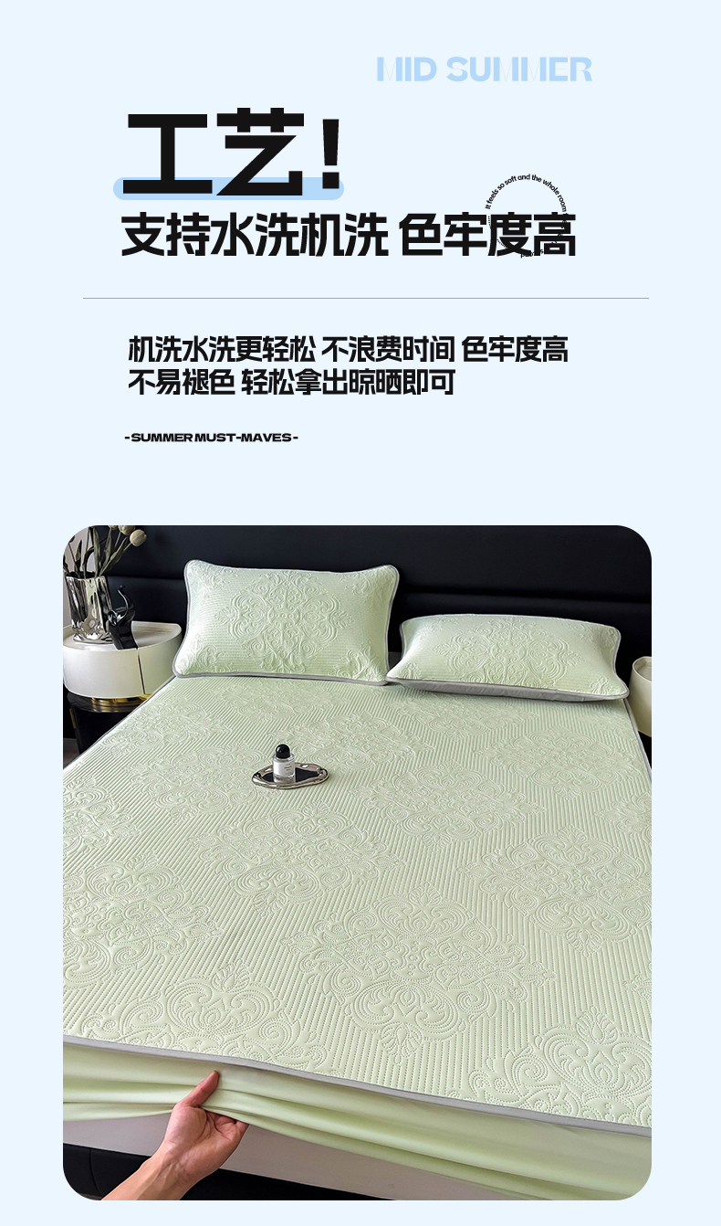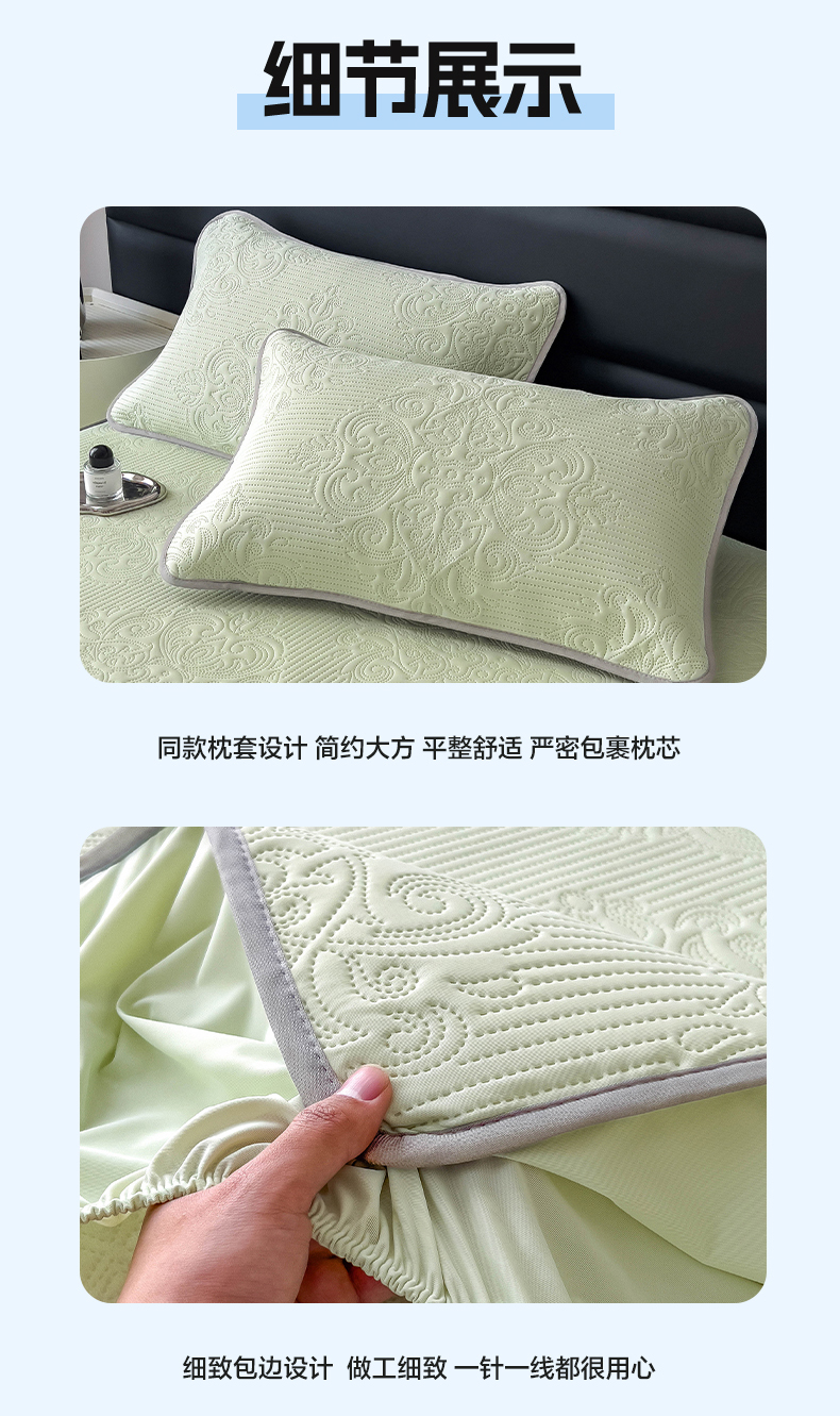 当前位置: 91家纺网 > 商品网购 > 床上用品 > 凉席 > 其他凉席 > 乐家欣 2026新款凉感欧式夏被床笠四件套 欧式床笠-嫩绿