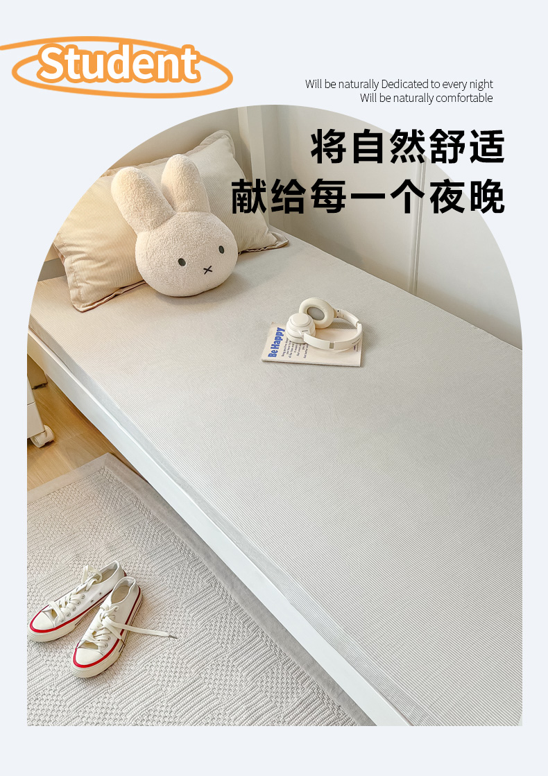 商品名称:缦绣阁家纺 2026新款亲肤水洗棉舒适学生上下铺床垫套床笠床罩宿舍专用 垫套-条纹浅咖