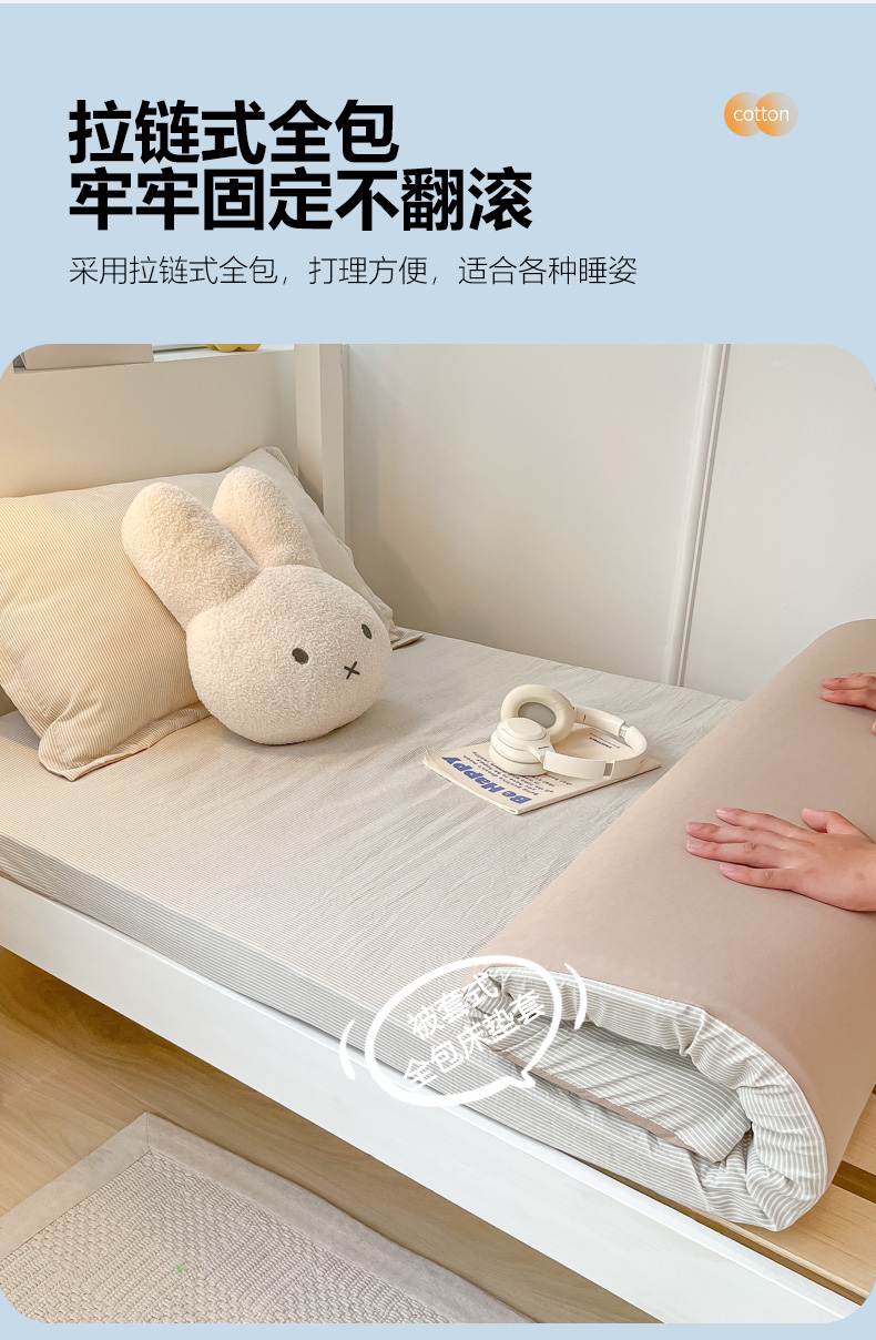 (总)缦绣阁家纺 2026新款亲肤水洗棉舒适学生上下铺床垫套床笠床罩宿舍专用,垫套-条纹浅粉,垫套-条纹浅灰,垫套-条纹浅咖,垫套-条纹浅绿