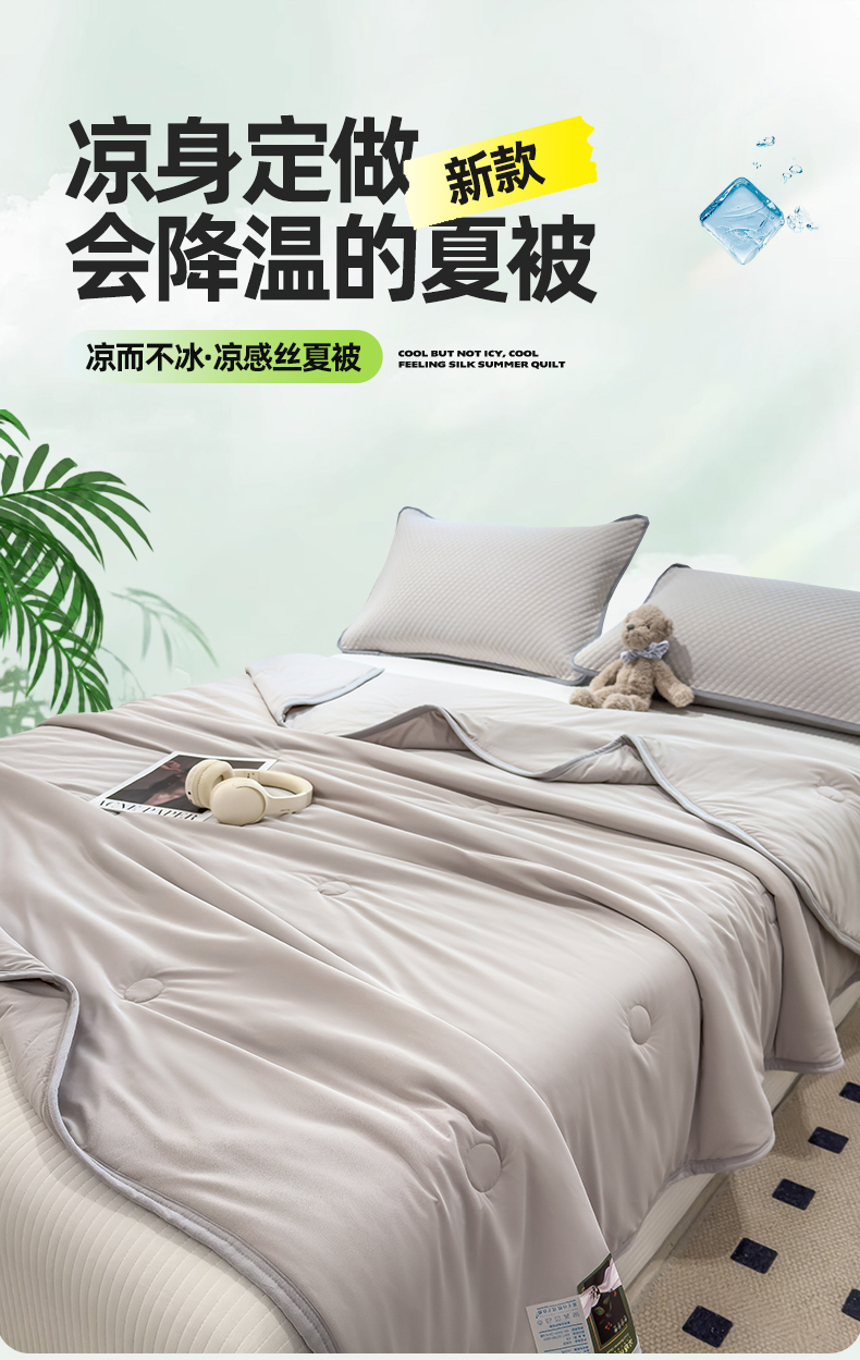 商品名称:乐家欣 2026新款凉感丝夏被系列 凉感夏被-浅灰