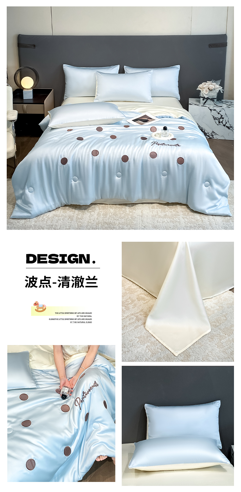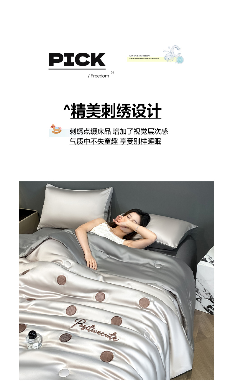 • 91家纺网 家纺一手货源 找家纺 云棉坊 2026新款水洗冰丝夏被-满绣系列 波点-冰山灰