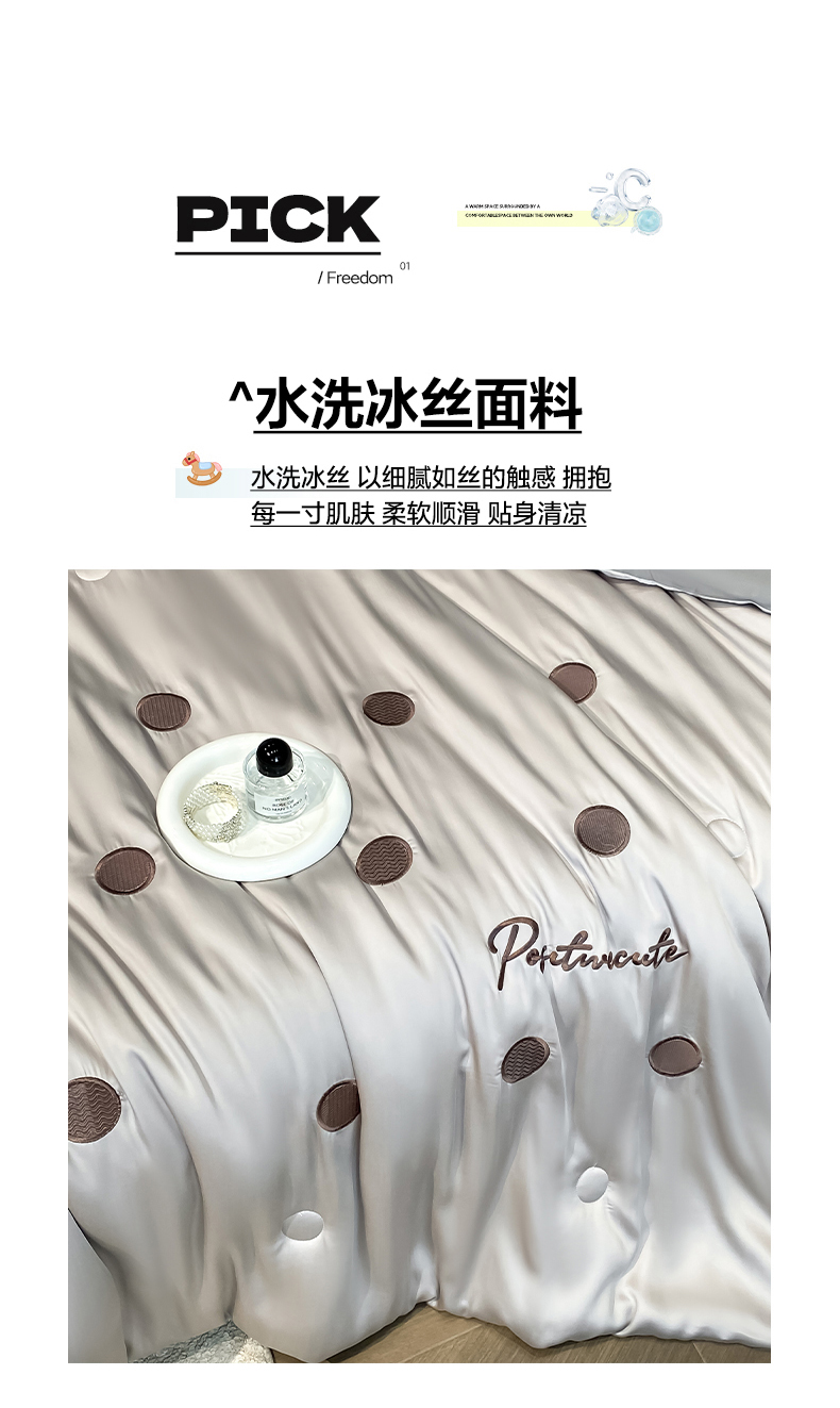 云棉坊 2026新款水洗冰丝夏被-满绣系列 波点-冰山灰