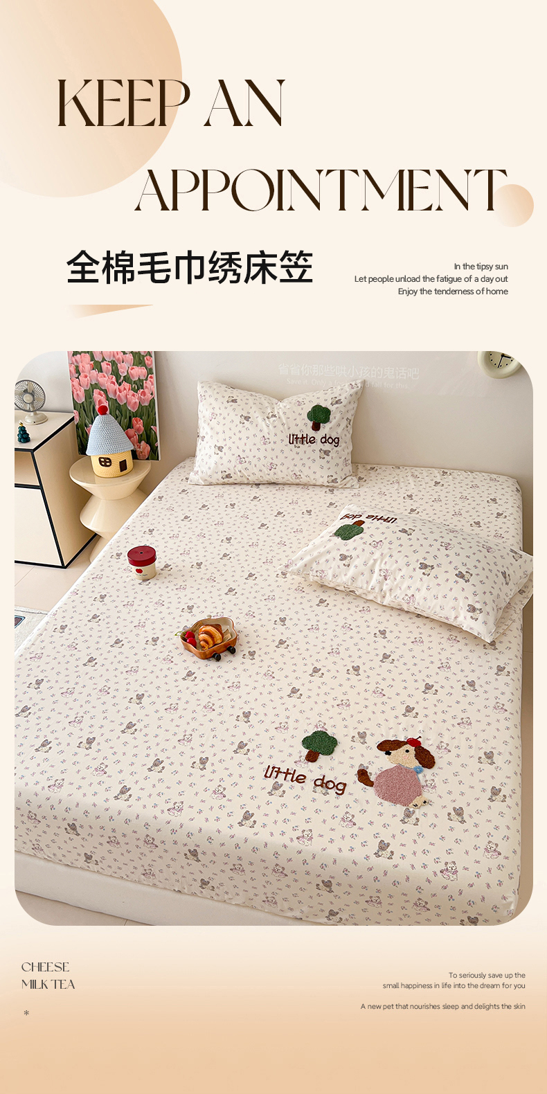 (总)舒居家纺 2026春夏新款夹棉防水印花单床笠 床笠单件,奥利奥小熊,小波点,丝带飞飞兔,靠谱小狗,小猫逃离季,小猫线球,慢生活,奶猫,心跳回声,圆镜兔,组合图仅供展示不可下单