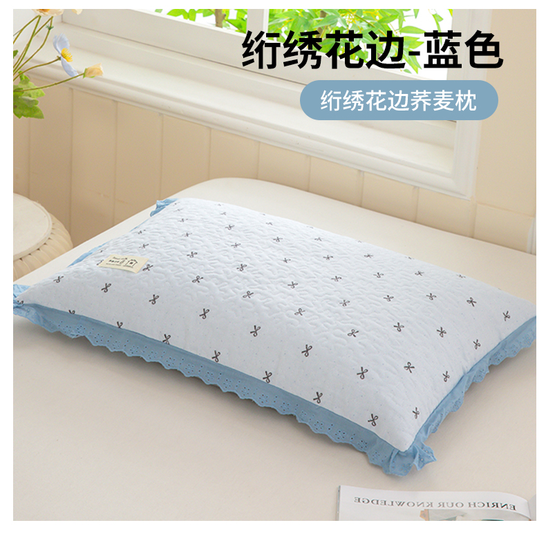 商品名称:枕之坊 2026新款绗缝花边荞麦枕枕头枕芯 纤绣花边-蓝色