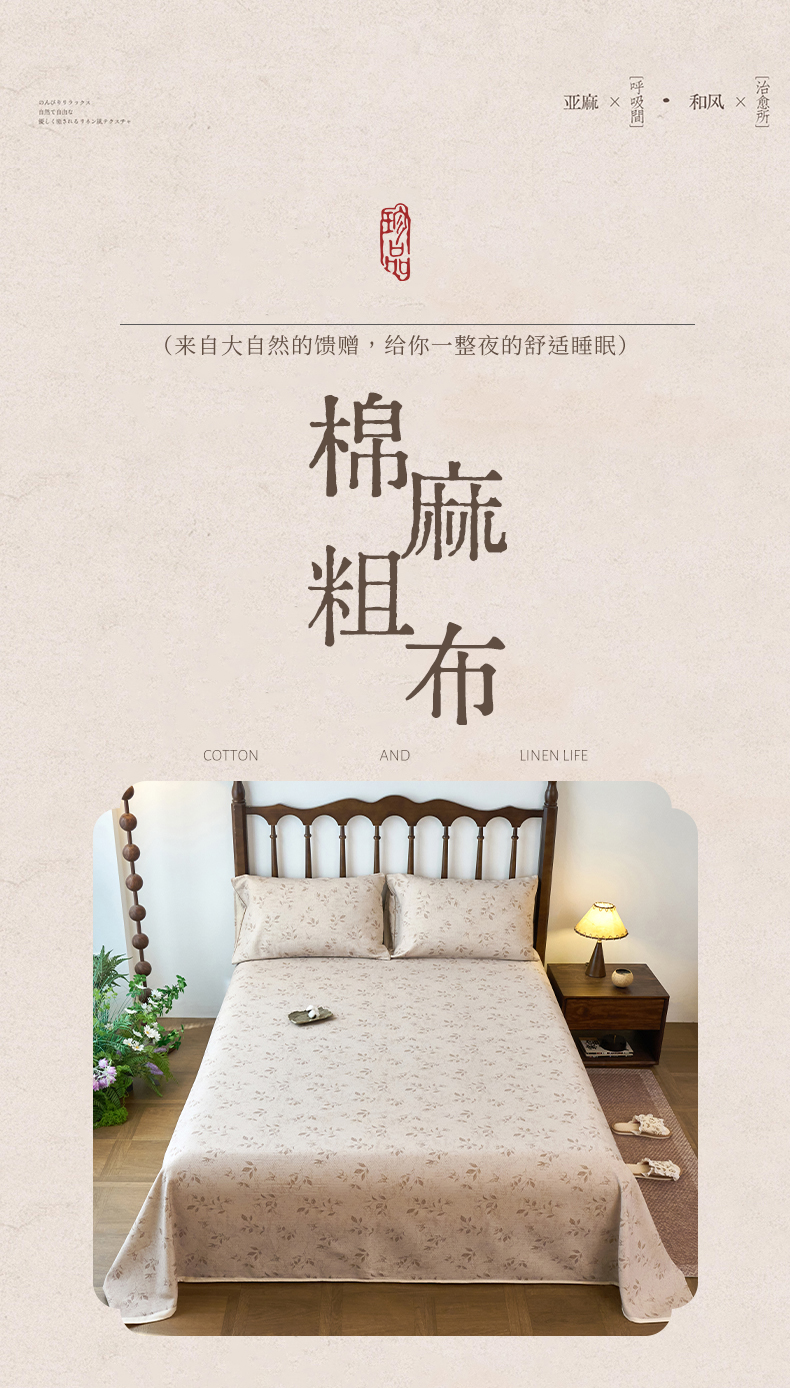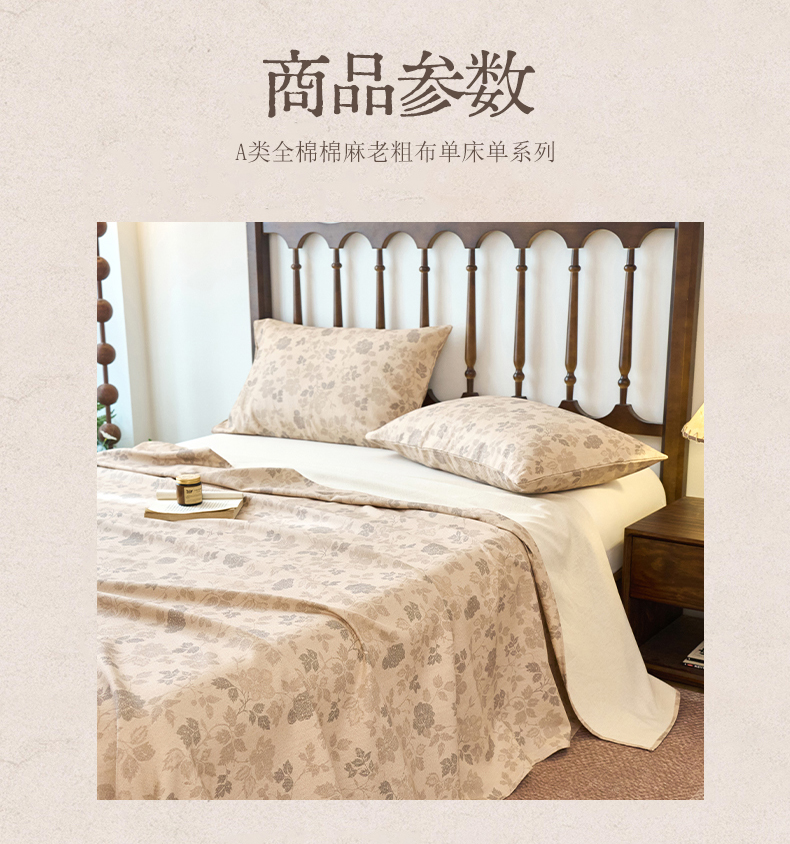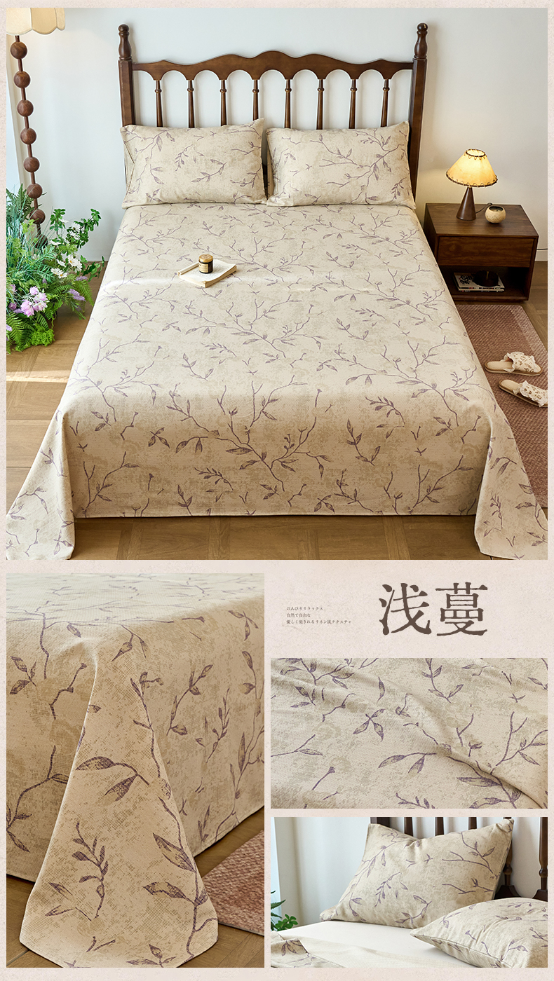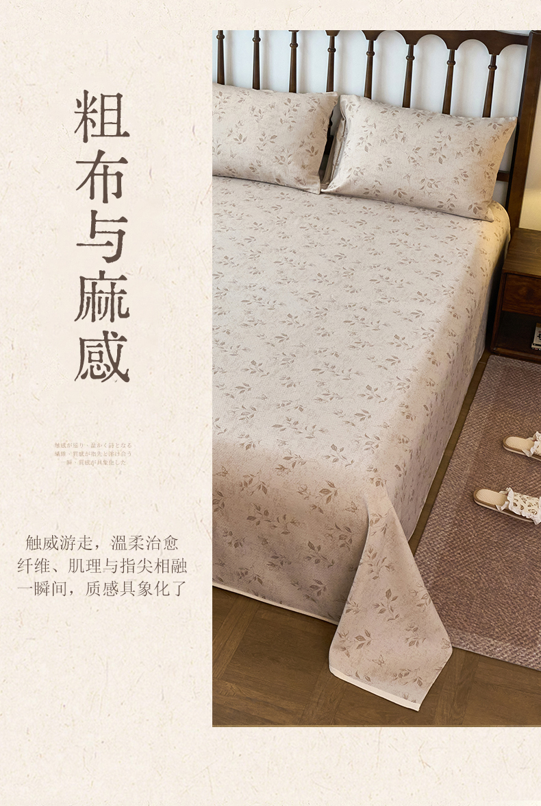 (总)春皖家纺 2026春夏新款棉麻老粗布系列床单空调软席凉席席子,丹青,蝶影,琉璃,墨香,浅蔓,柔结,雾花,樱落