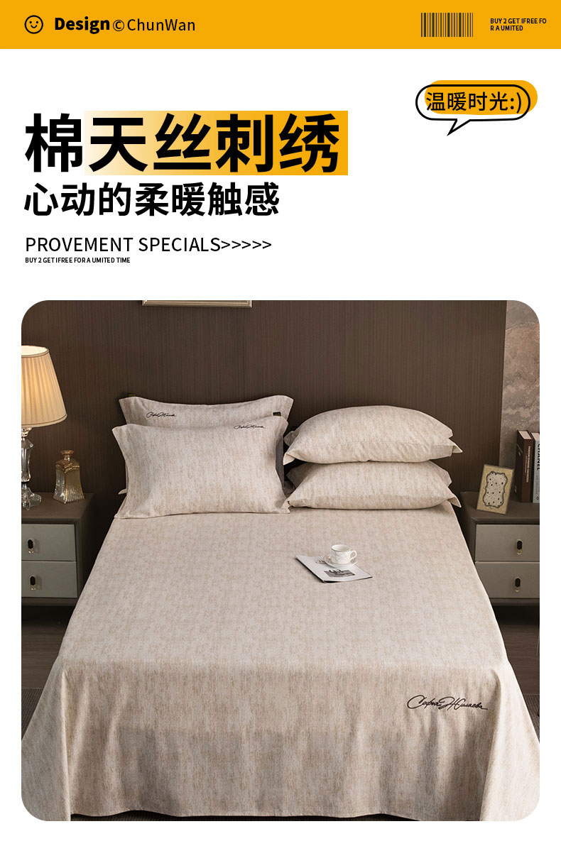春皖家纺 2026春夏新款天丝棉刺绣单床单 床单单件 亮绮黄