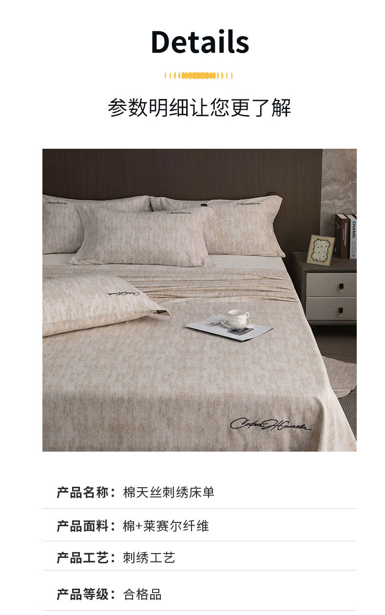 (总)春皖家纺 2026春夏新款天丝棉刺绣单床单 床单单件,宝绮蓝,亮绮黄,曼妮-贝壳色,曼妮-绿萝纱,曼妮-云褐色,曼妮-紫,苔绮绿,钛绮灰,樱绮丝