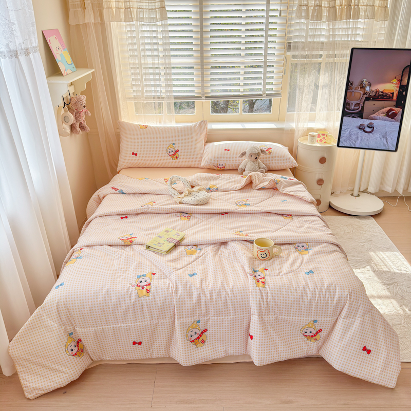(总)梦舒阳家纺 2026新款仿棉夏凉被古法水洗棉夏被空调被跑量款,花涧小兔,黄格子星星,蓝格子兔子,绿色星叶,水墨花,兔兔闺蜜,韵味狗,枝叶,紫萱,紫韵