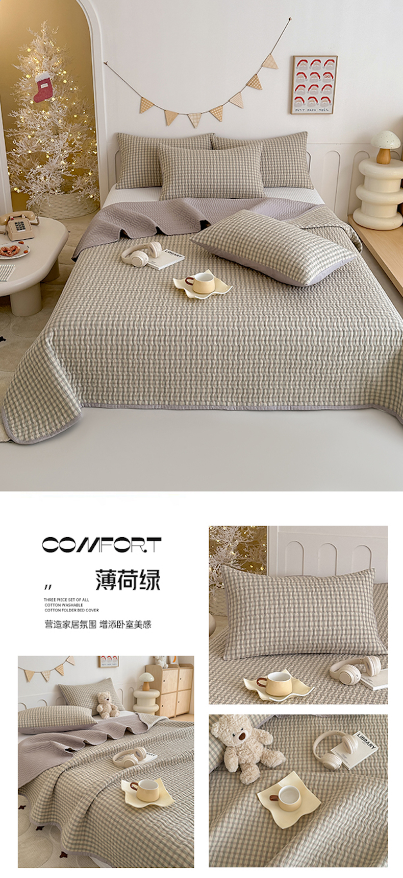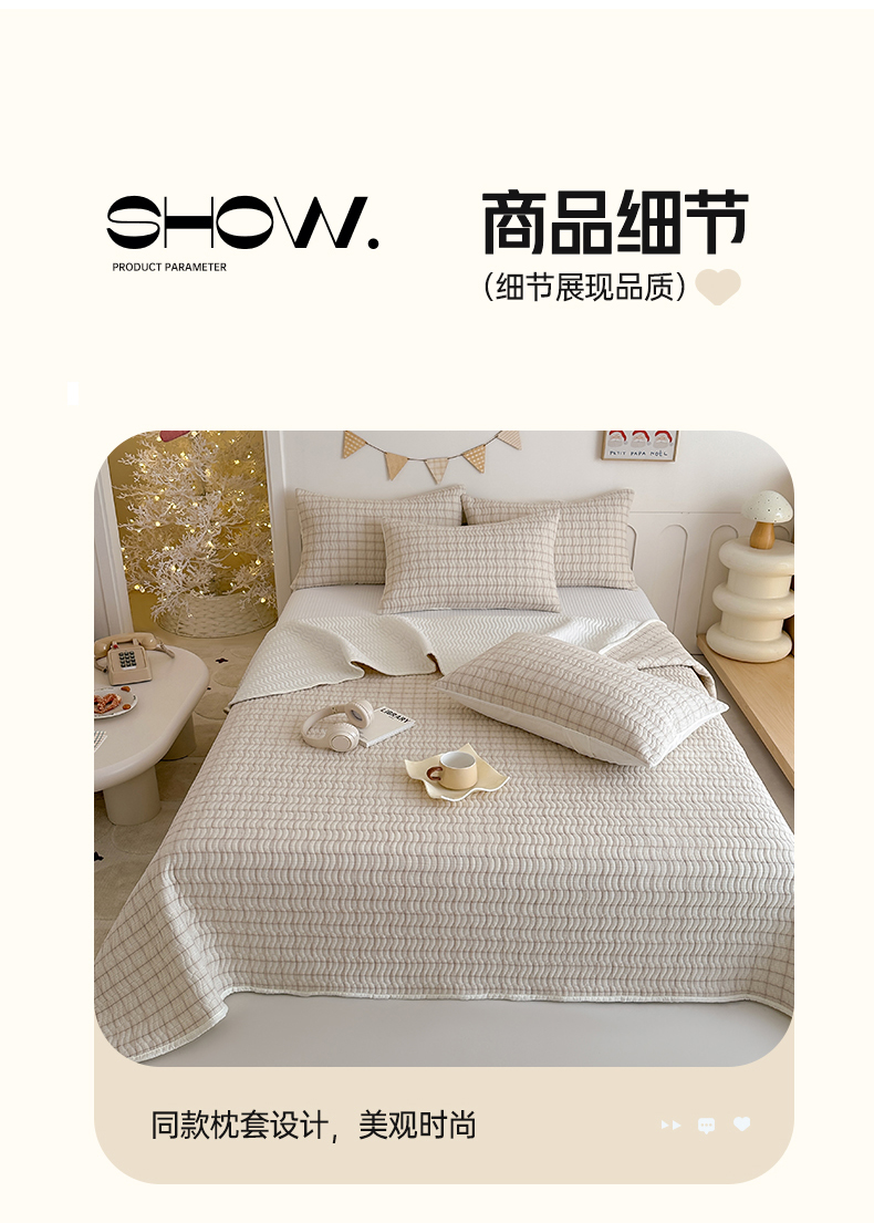 (总)欣宜家纺 2026新款全棉色织水洗棉床盖三件套,奥利奥格,海盐细格,焦糖拿铁,墨禾绿格,南法棕格,雾蓝格,新年红格,英伦格纹,芝士奶格,组合图仅供展示-不可下单