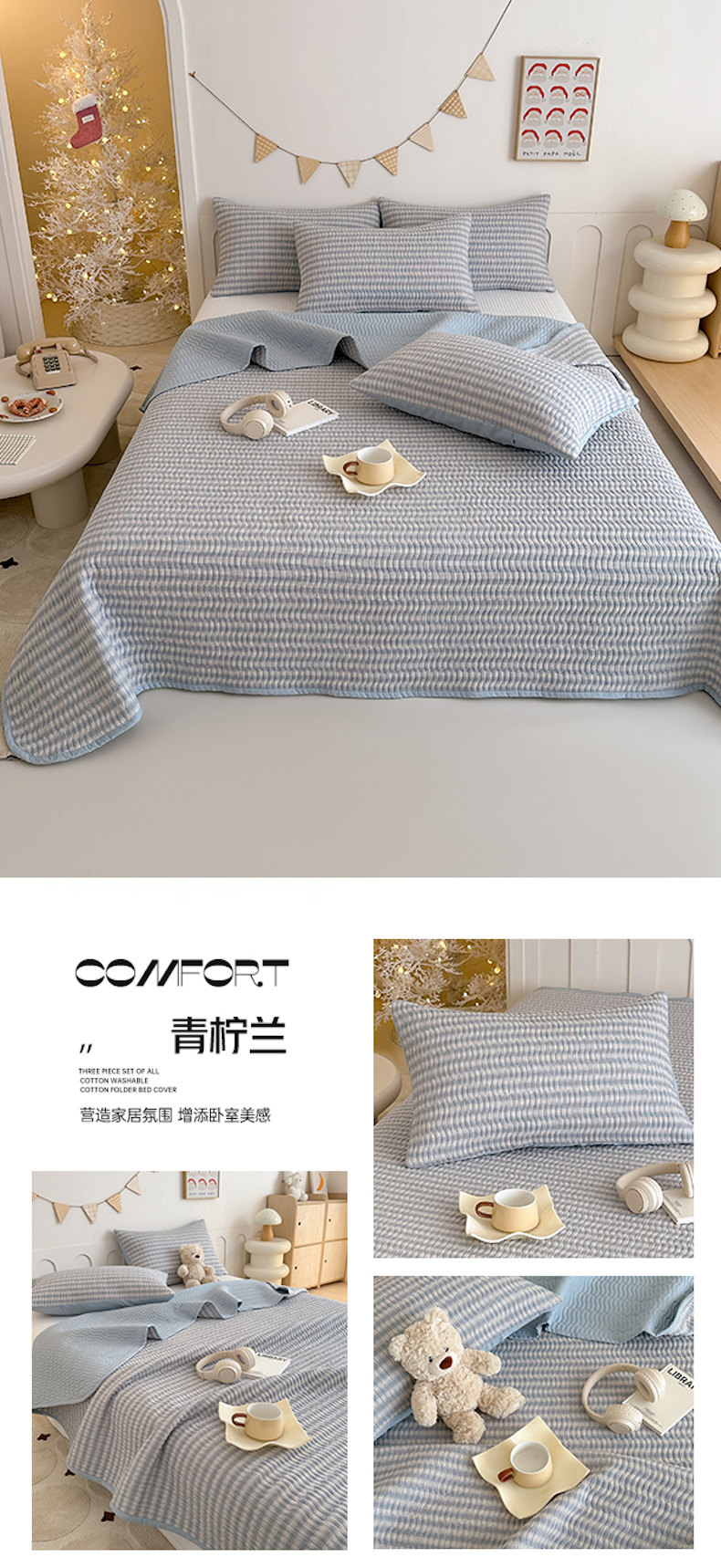 商品名称:(总)欣宜家纺 2026新款A类全棉纯棉水洗棉夹棉床盖三件套床褥子软床垫
