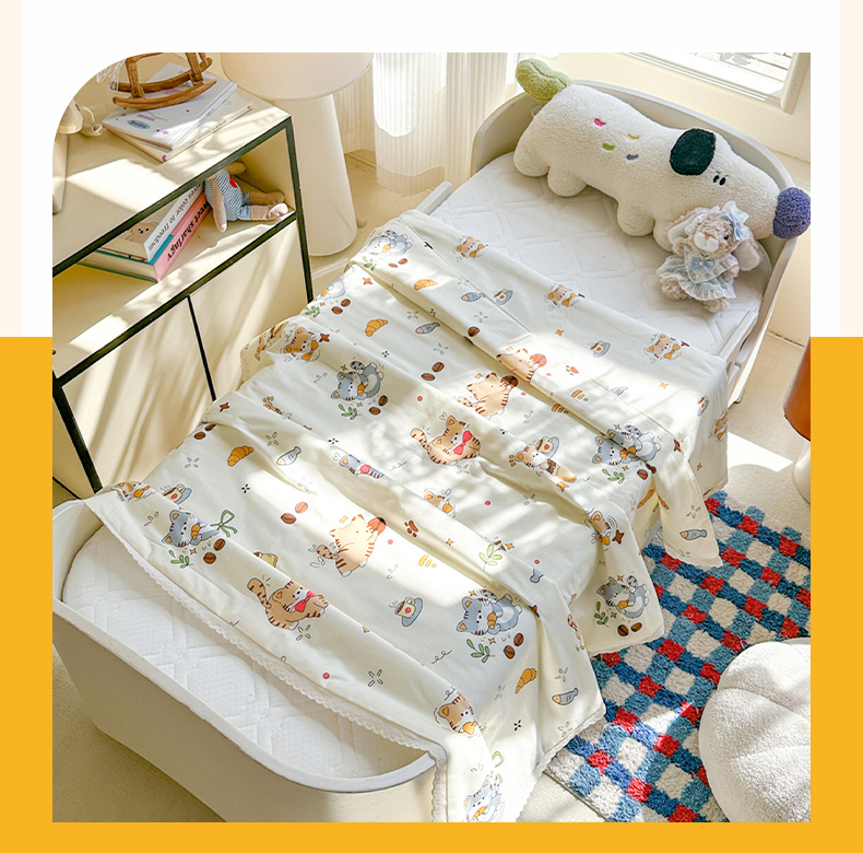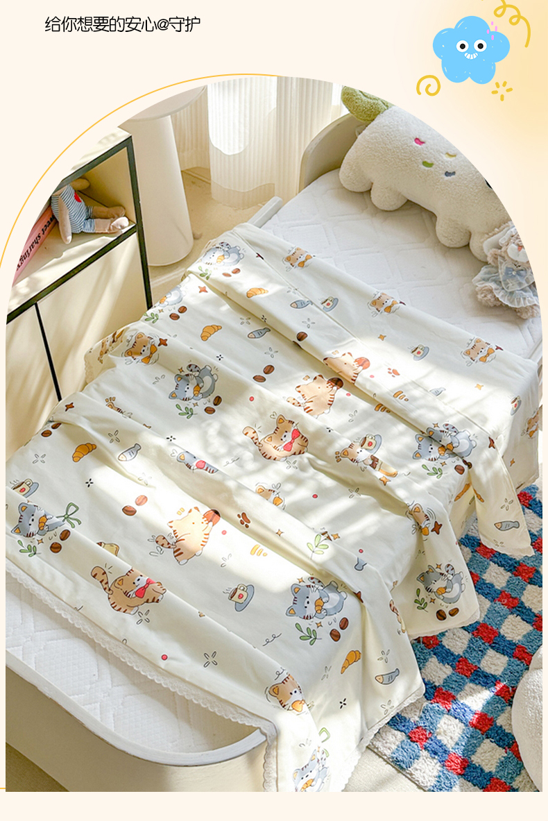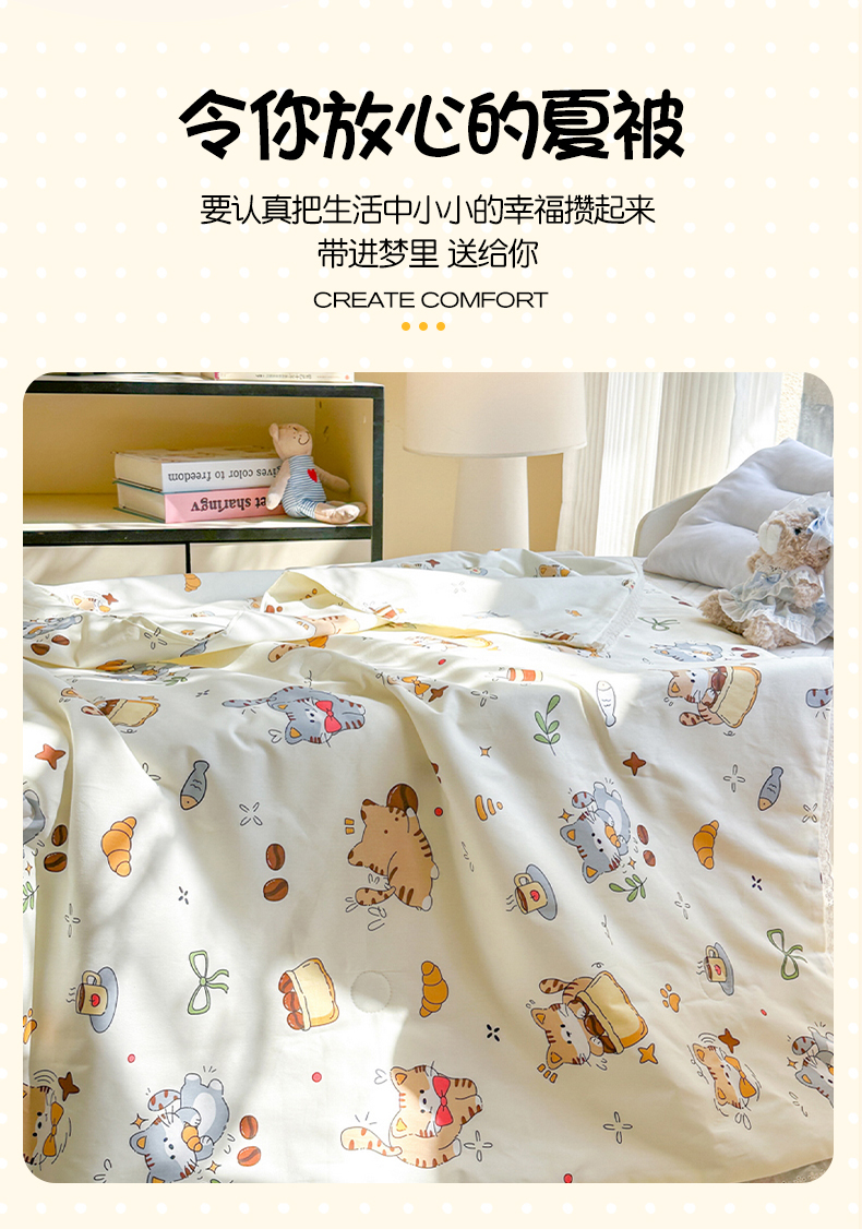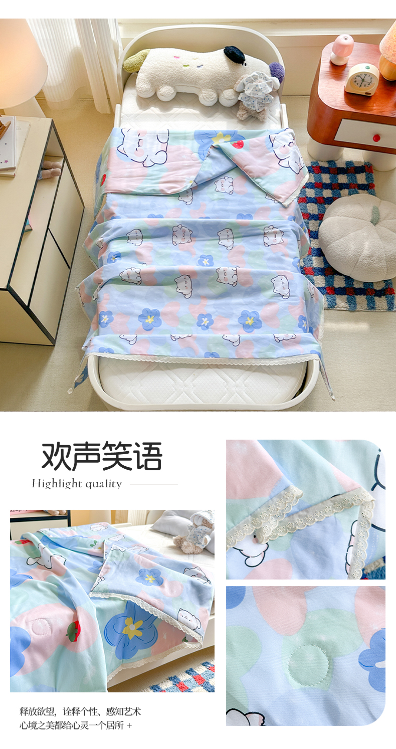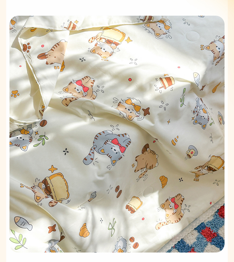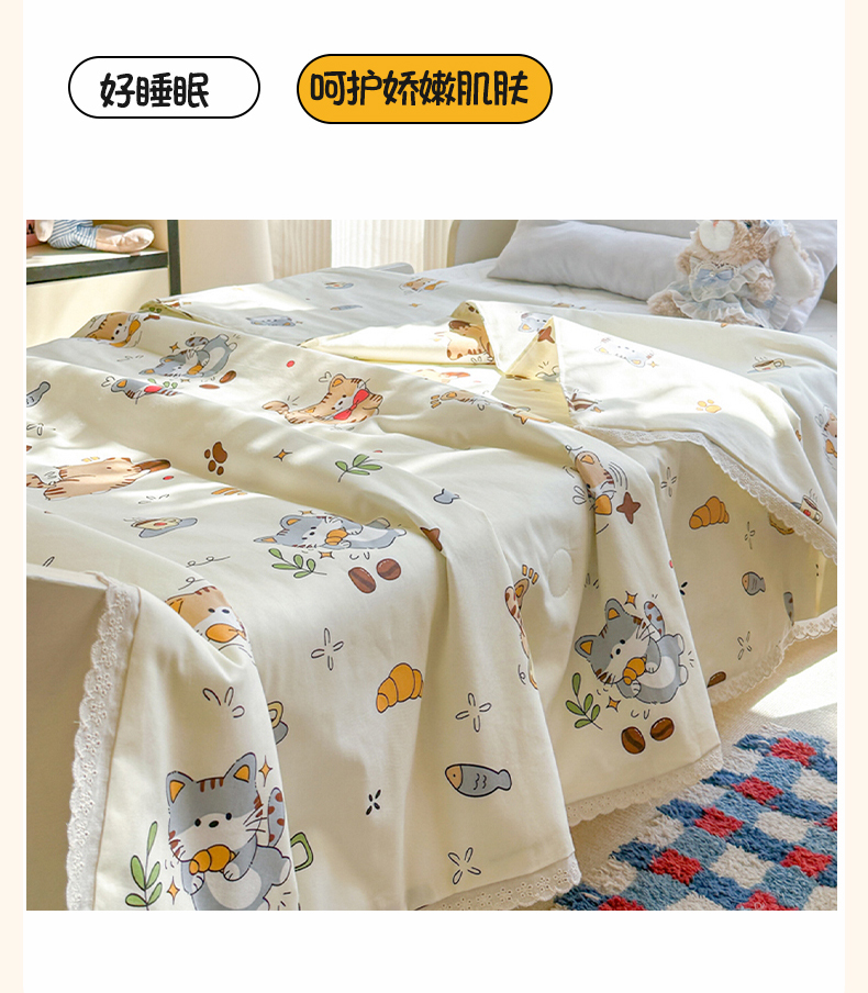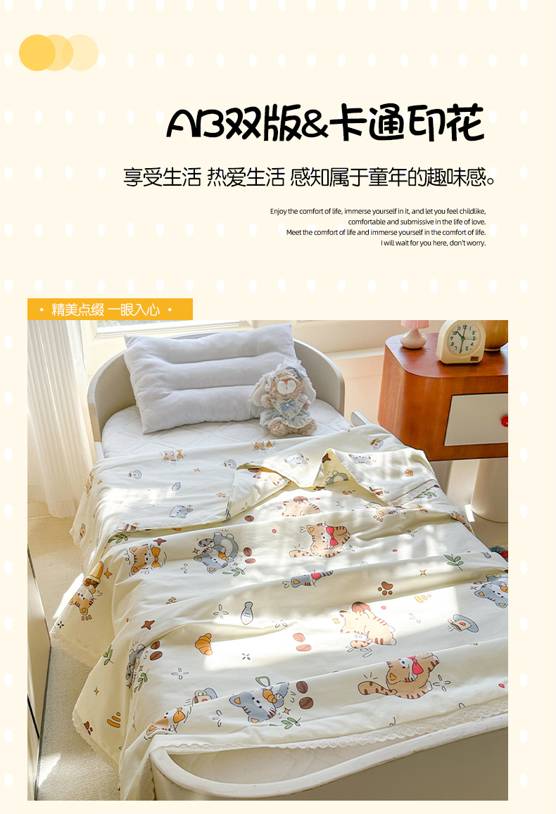 • 91家纺网 家纺一手货源 找家纺 春妮家纺 2026新款全棉花边儿童幼儿园小被子夏被空调被夏凉被 嬉皮笑猫