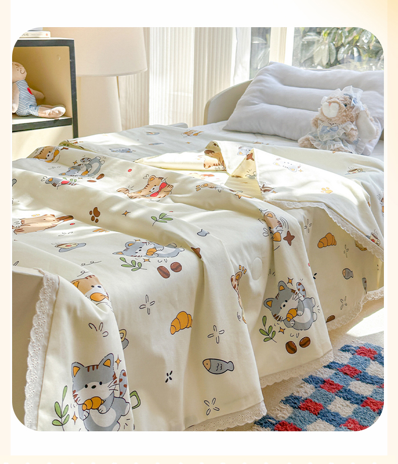 春妮家纺 2026新款全棉花边儿童幼儿园小被子夏被空调被夏凉被 嬉皮笑猫