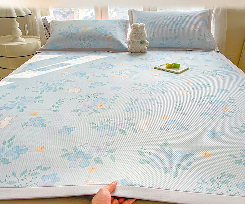 商品名称:莱家富 2026新款夏季花卉冰丝床裙席单件夏天冰豆豆A类可机洗学生宿舍空调软席 印花床裙席-花影
