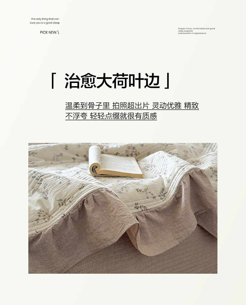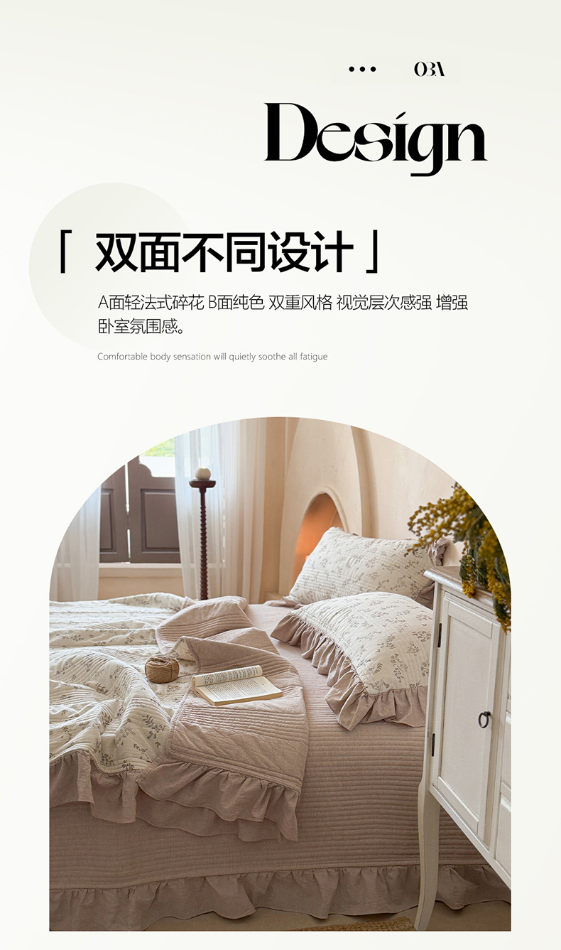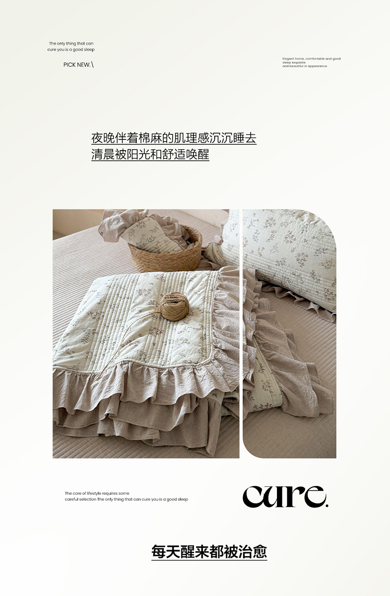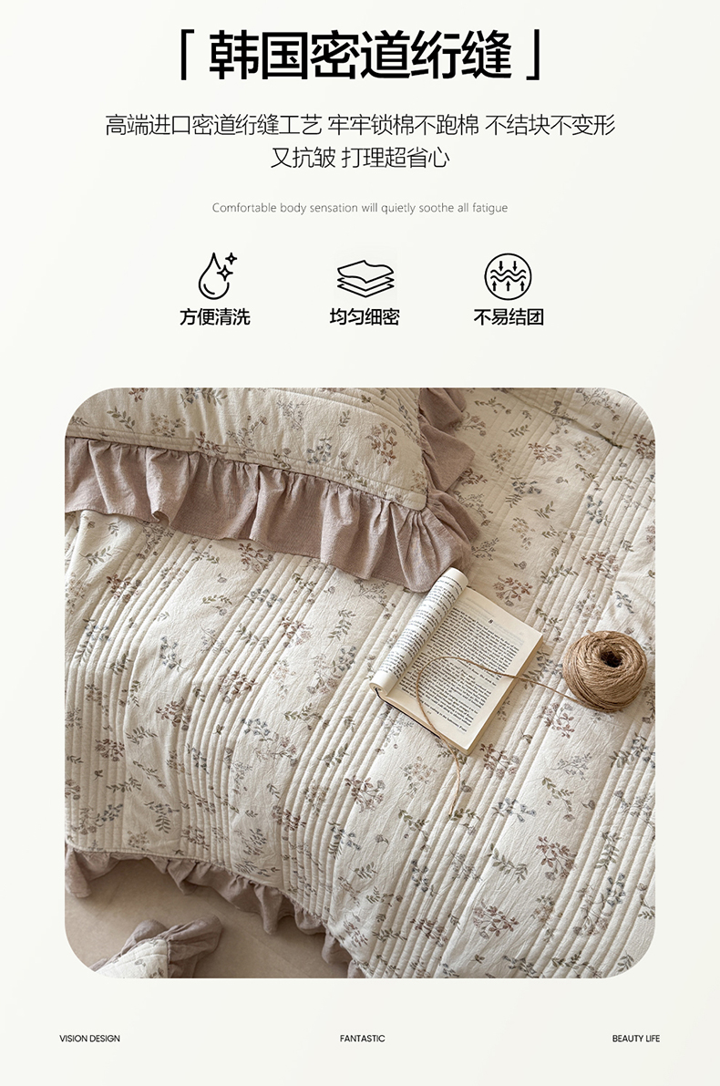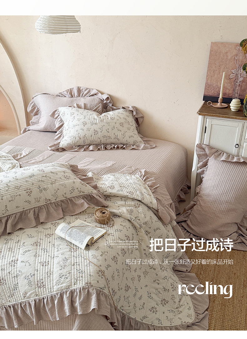 (总)漫调家纺 2026春夏新品双面棉麻法式荷叶边高温水洗夏被可配夏被四件套床单床盖四件套(夏被四件套咨询微信),粉雾花甸,蓝雾花影,奶杏枝蔓,青枝野果,组合