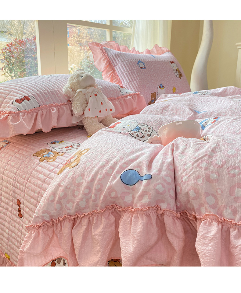 商品名称:眠势力 2026新款韩版双层纱花边被套云感皱皱纱被罩带花边 幸运小马