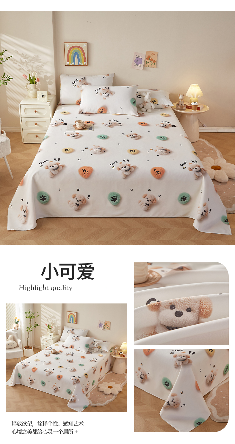当前位置: 91家纺网 > 商品网购 > 床上用品 > 凉席 > 其他凉席 > 家品罗兰 2026新款数码印花5D加厚老粗布床单单件双人家用特厚被单三件套学生宿舍床单凉席 小可爱