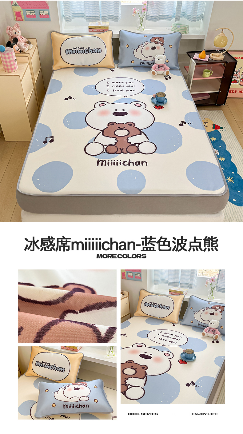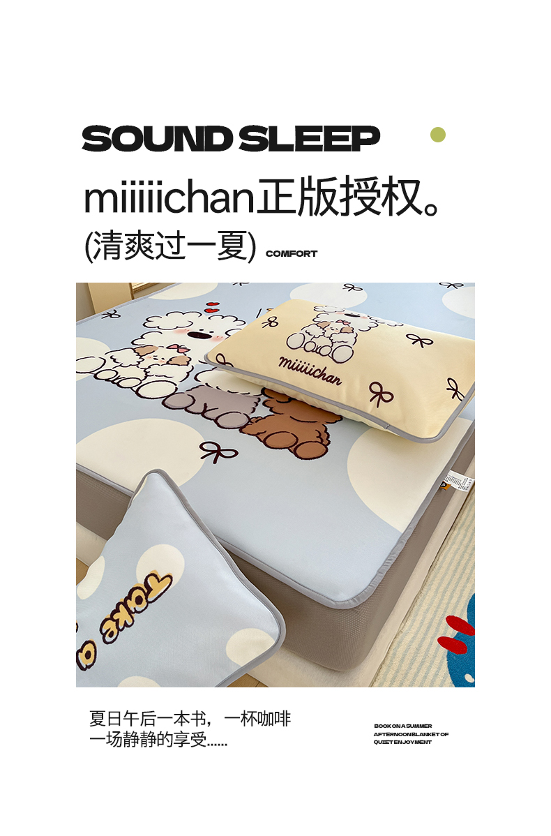 • 91家纺网 家纺一手货源 找家纺 (总)桃子家居 2026新款正版授权miiiiichan大版数码印花1200D凉席三件套平铺床笠,冰感席miiiiichan-点点泡芙狗,冰感席miiiiichan-狗狗乐园,冰感席miiiiichan-蓝色波点熊,冰感席miiiiichan-绿彩色波点狗,冰感席miiiiichan-俏皮小狗,冰感席miiiiichan-曲奇贪吃熊,冰感席miiiiichan-星愿小狗