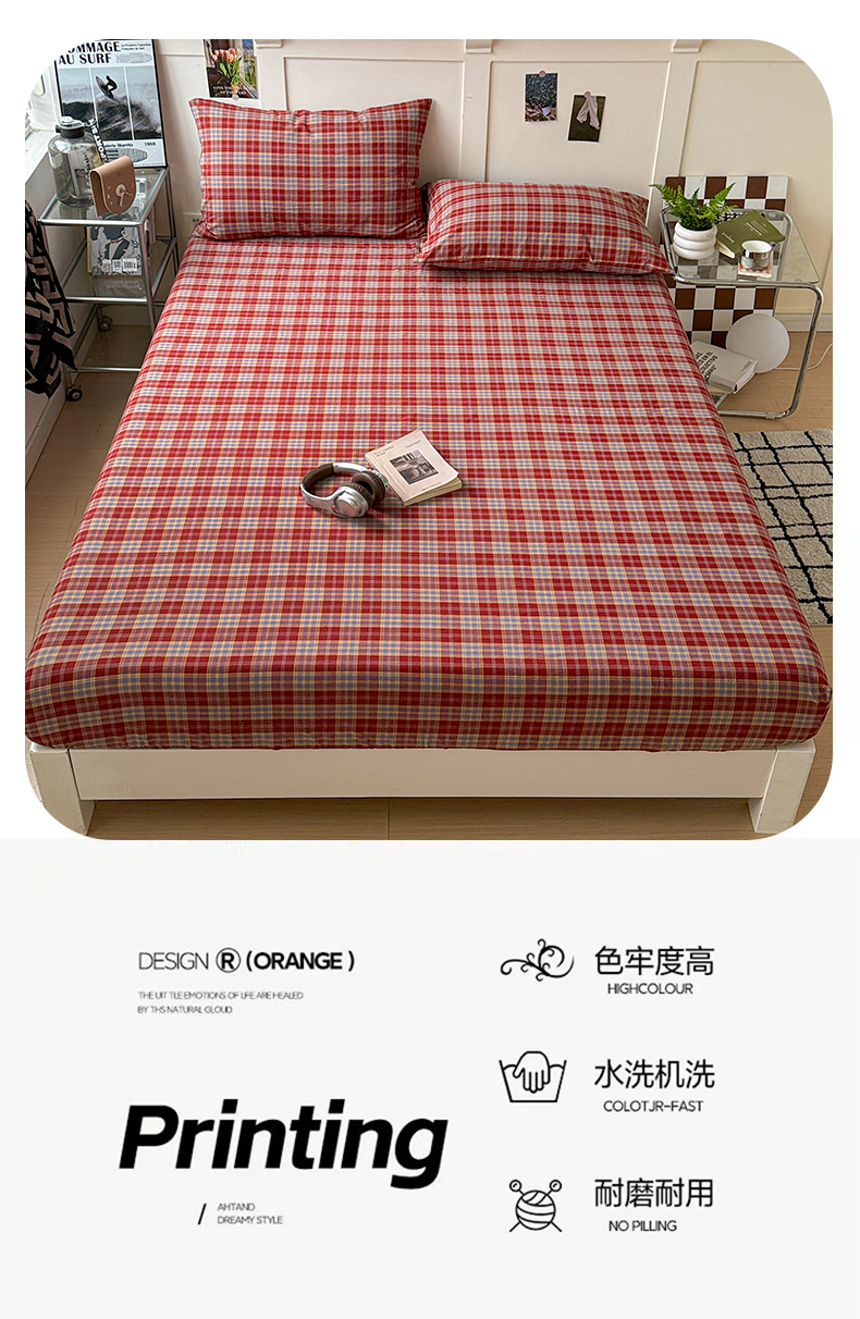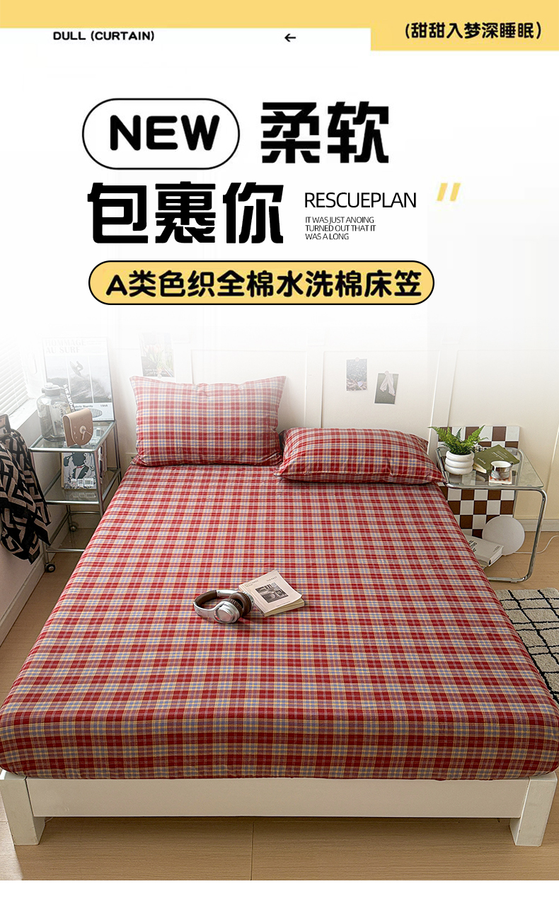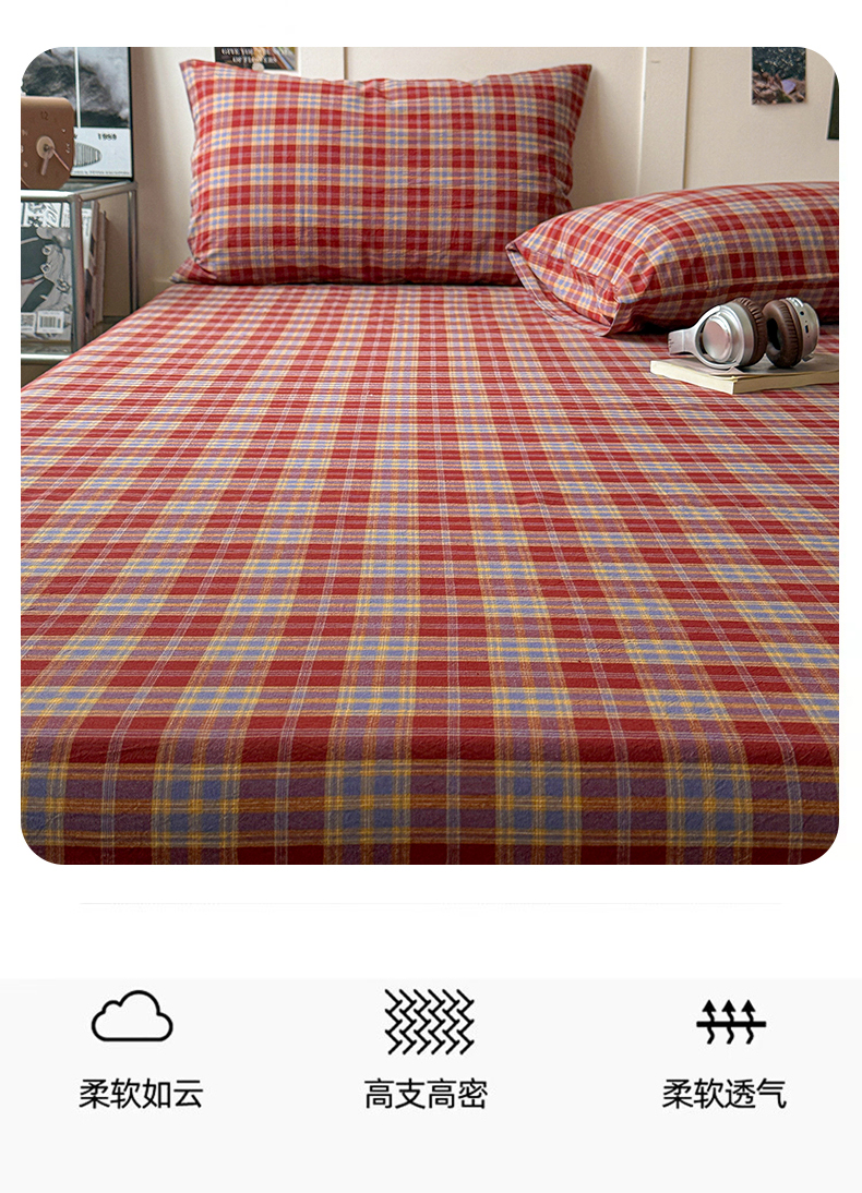大柏树 2026新款全棉纯棉水洗棉单床笠单品床笠床笠单件 布雷红