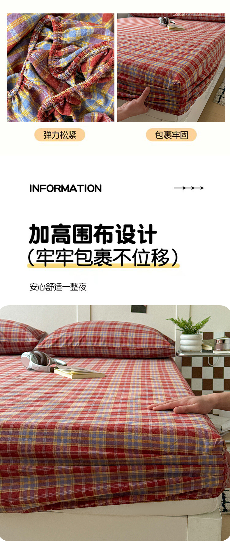 商品名称:大柏树 2026新款全棉纯棉水洗棉单床笠单品床笠床笠单件 布雷红