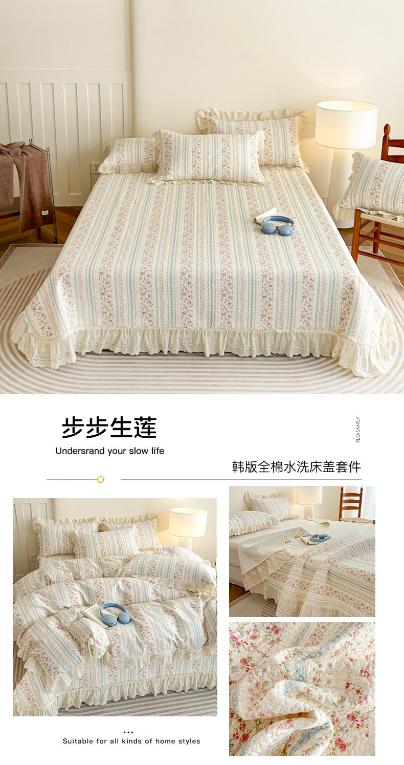 当前位置: 91家纺网 > 商品网购 > 床品套件 > 四件套 > 全棉普通四件套 > 羽爱家纺 2026新款全棉水洗韩版花边床盖四件套 运动狗狗