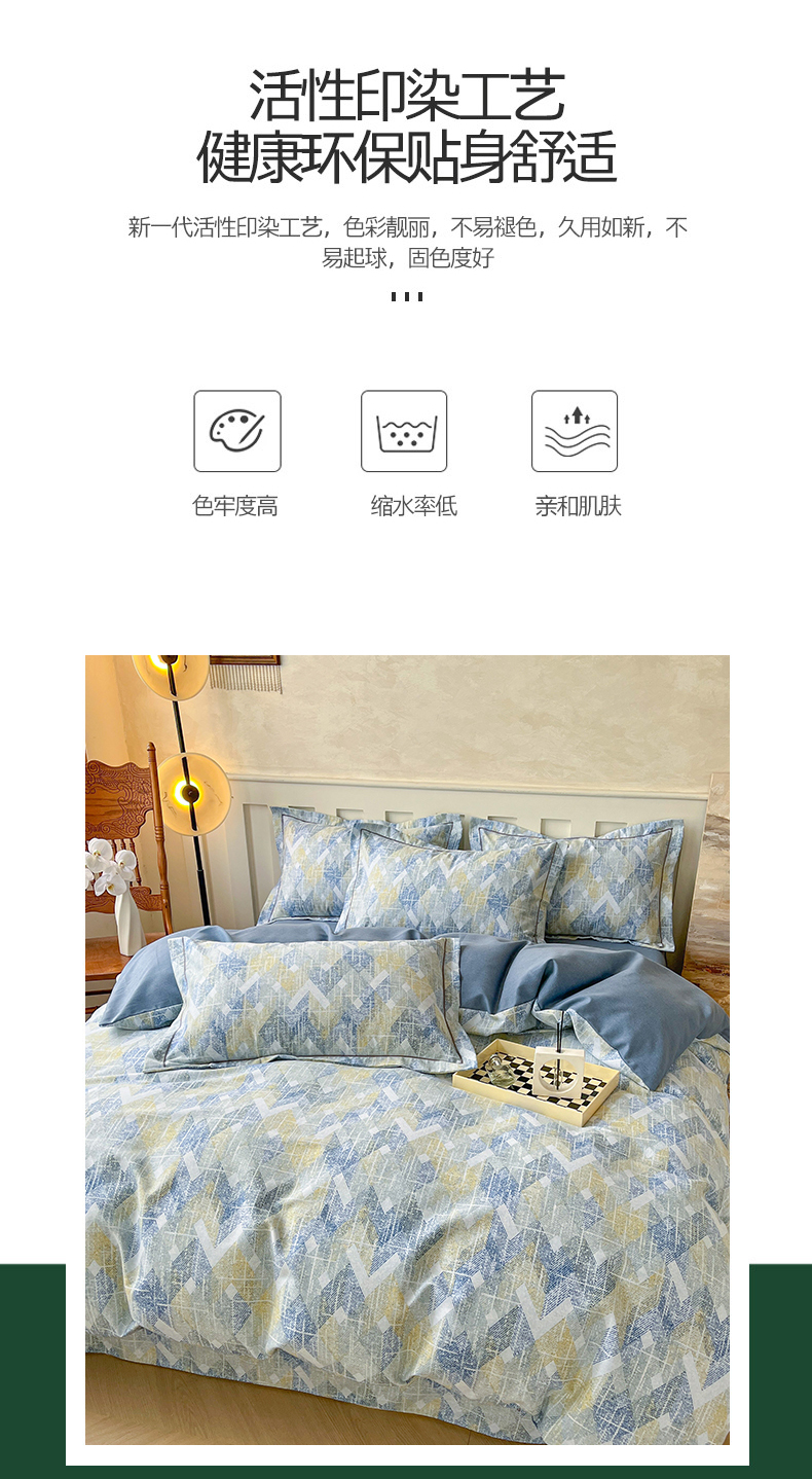 当前位置: 91家纺网 > 商品网购 > 床品套件 > 四件套 > 简约 2025新款全棉四件套活性生态磨毛四件套 妮可-蓝