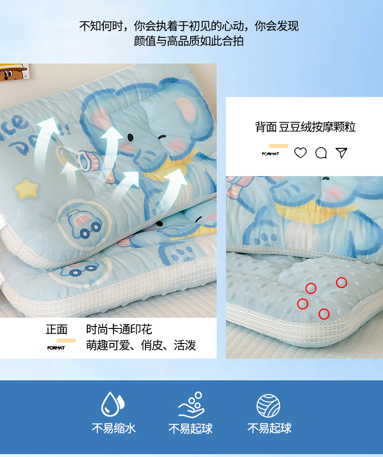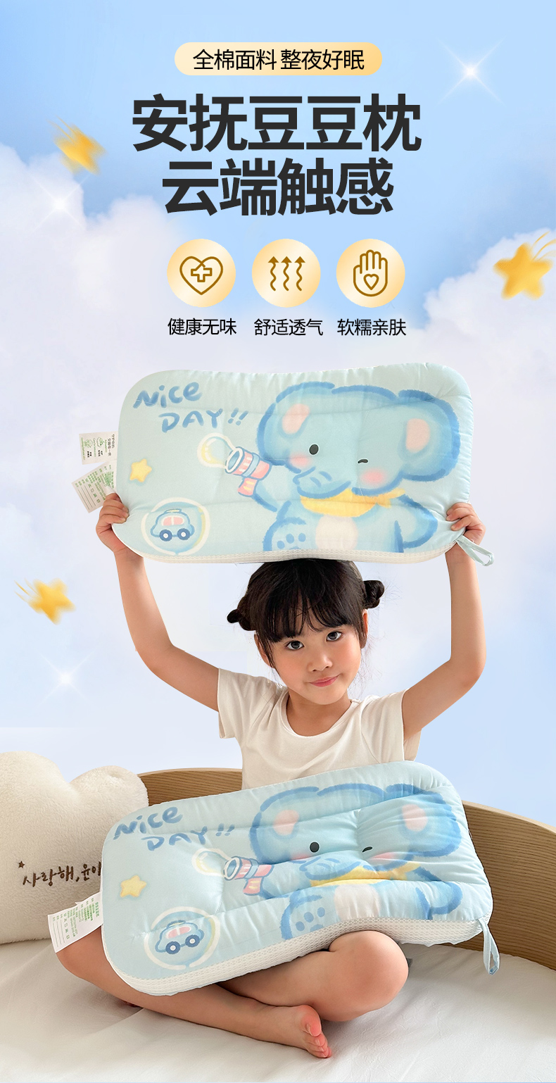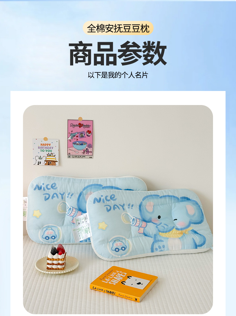 商品名称:嗨生活 2026新款冰豆豆枕芯大版卡通儿童枕芯幼儿园枕芯枕头枕芯 绒豆豆-快乐小象