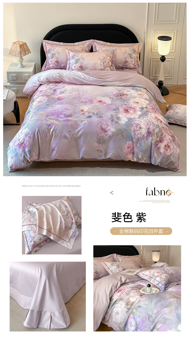 (总)启航家居 2025新款全棉铂金棉数码印花四件套,风香花倦,花的嫁纱,洛香忆梦绿,暮云春树灰,翩若惊鸿粉,普罗旺斯紫,新塞纳舞曲红,新塞纳舞曲紫