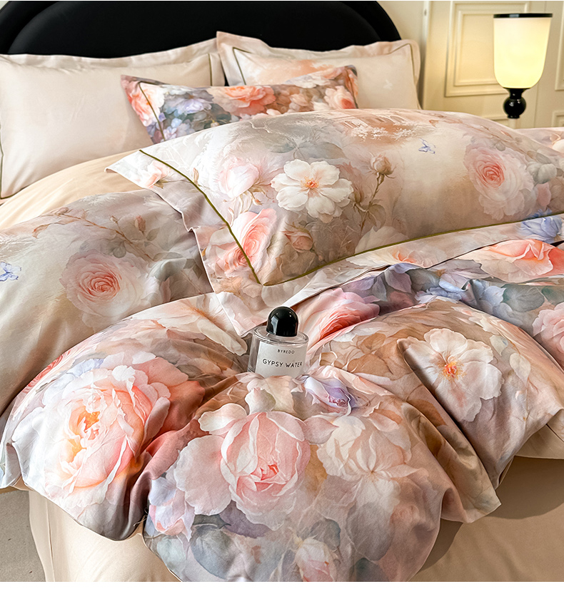 (总)启航家居 2026新款春夏天丝莱赛尔数码印花四件套,花颜外兰,半纸叶灰,池禾韵兰,春溢然兰,春溢然绿,花颜外粉,花园派对沙色,梦境之翼兰,梦境之翼绿,烟花间粉,烟花间绿,樱岛春漫粉,云间素语绿,云间素语紫,早春的树蓝,早春的树紫,栀花语粉,紫陌紫