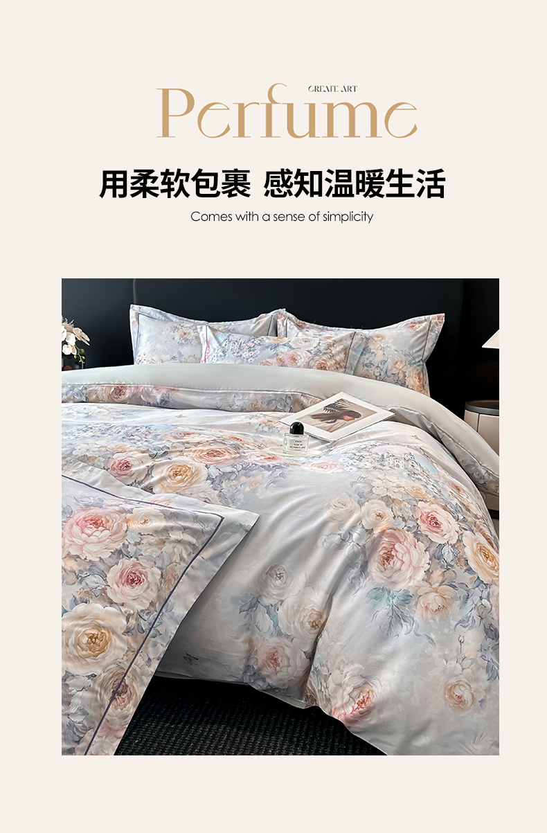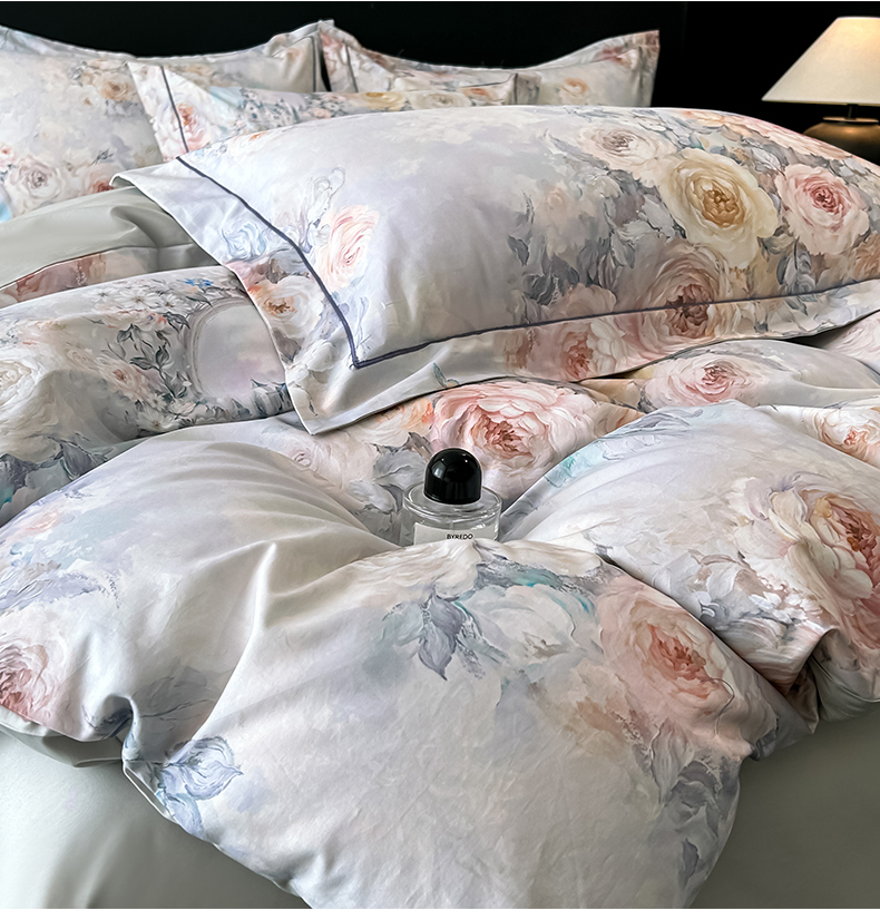 (总)启航家居 2025新款全棉铂金棉数码印花四件套,风香花倦,花的嫁纱,洛香忆梦绿,暮云春树灰,翩若惊鸿粉,普罗旺斯紫,新塞纳舞曲红,新塞纳舞曲紫
