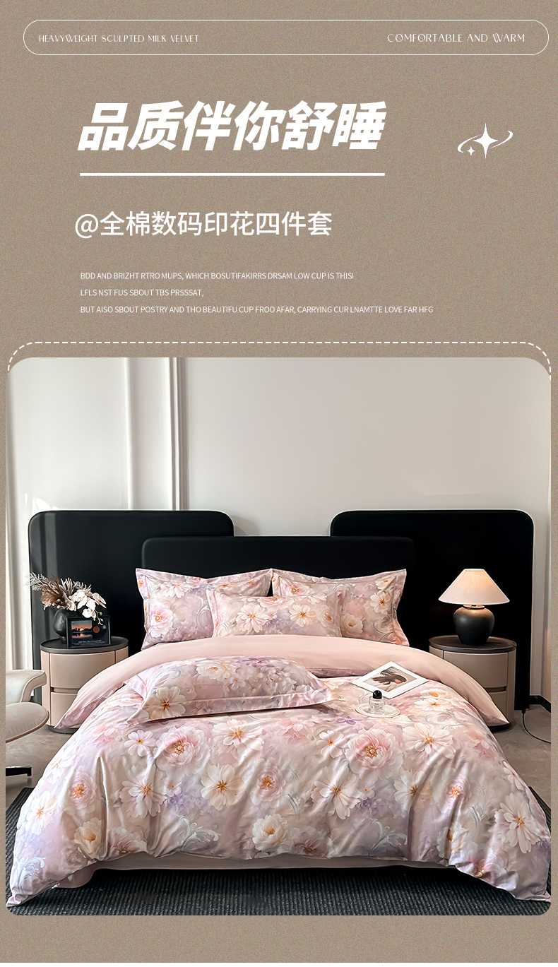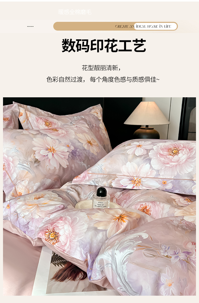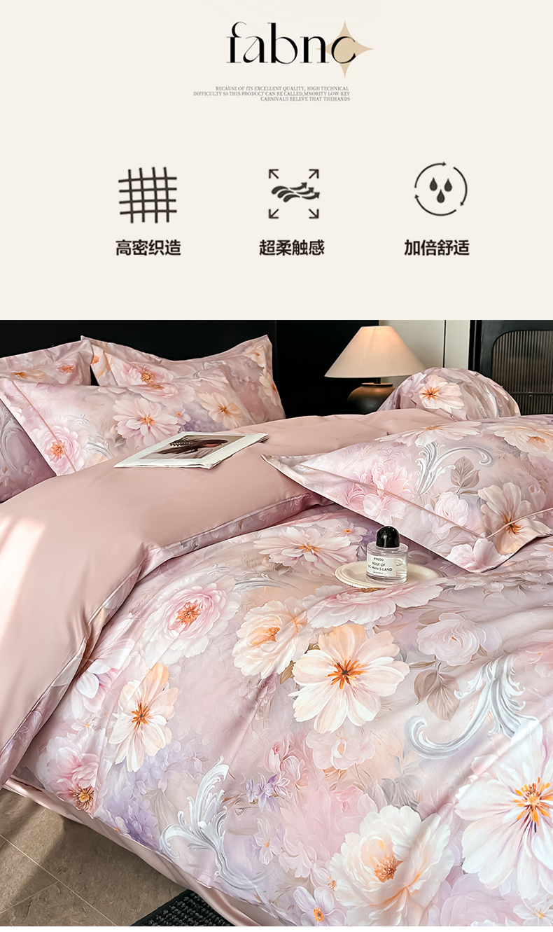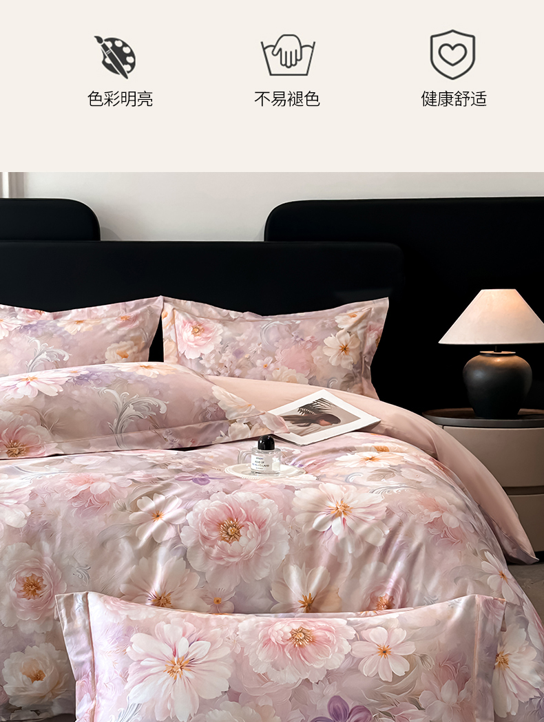启航家居 2026新款全棉纯棉数码印花四件套(控价198) 云薇悠韵粉
