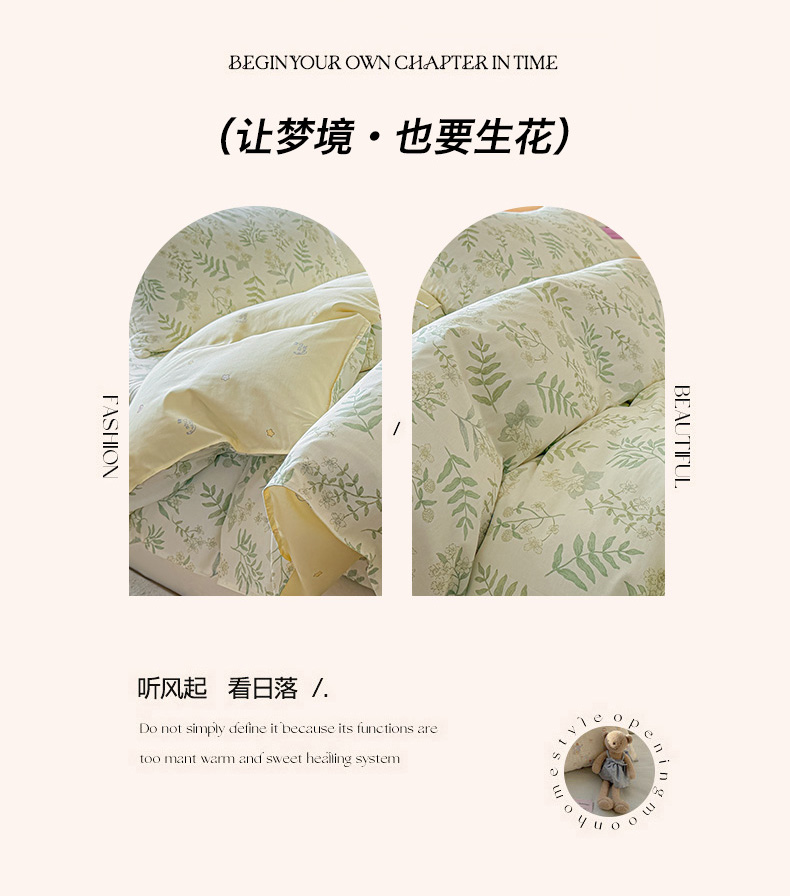 商品名称:优眠坊 2026春夏新款全棉印花四件套单品系列-单被套(预留缩水率) 绿茵-单被套