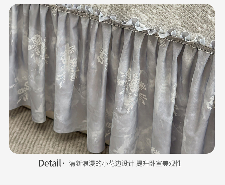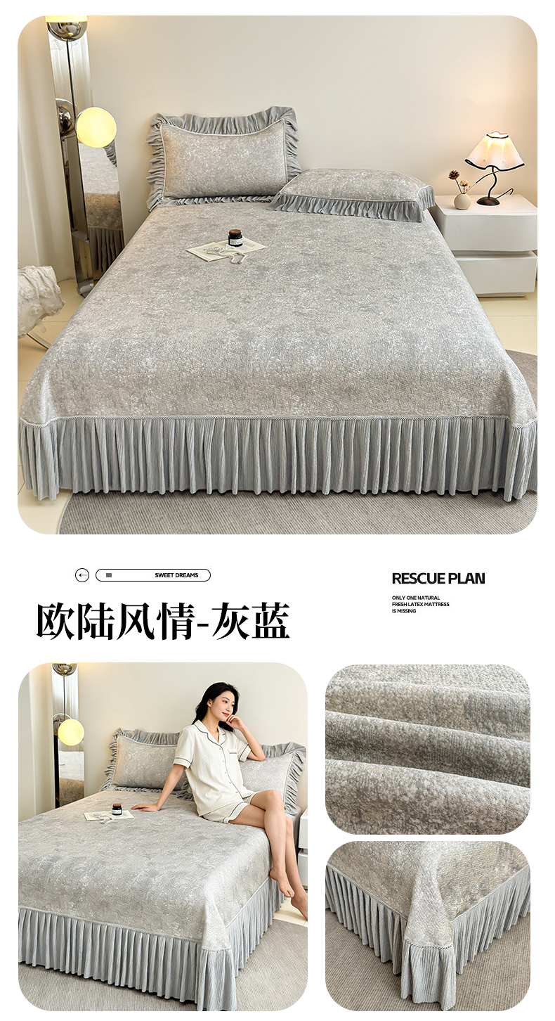 商品名称:锦逸家居 2026新款床裙款真PE冰丝凉席 欧陆风情-灰蓝