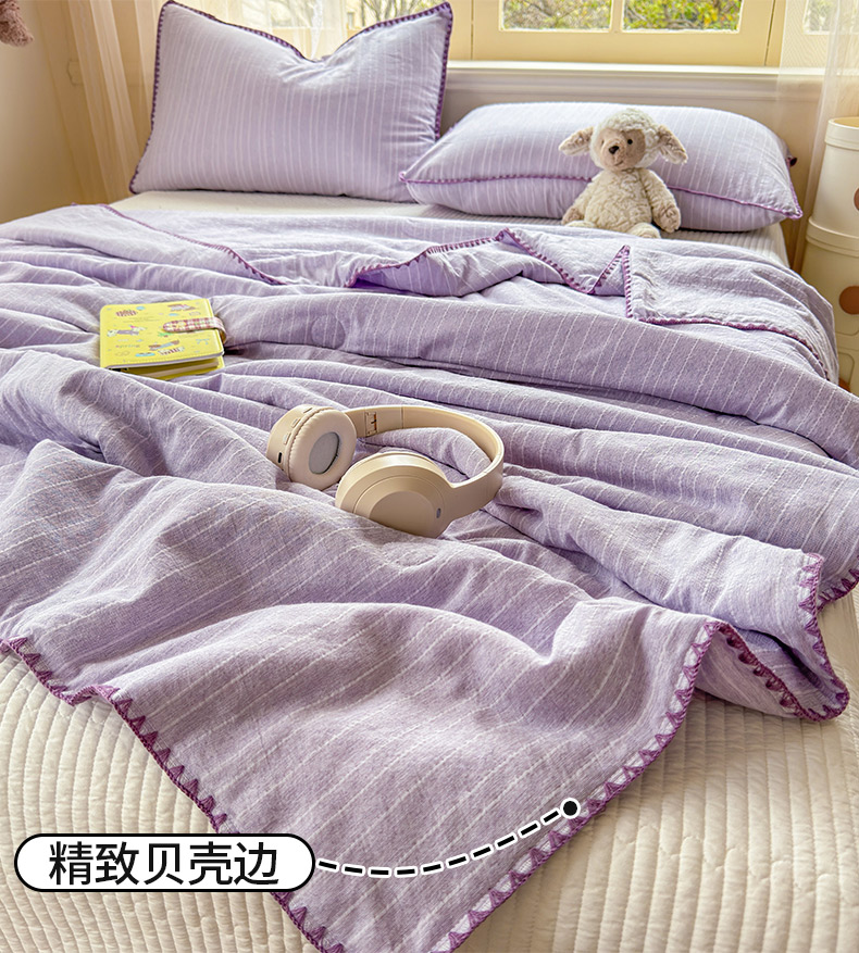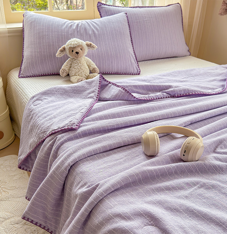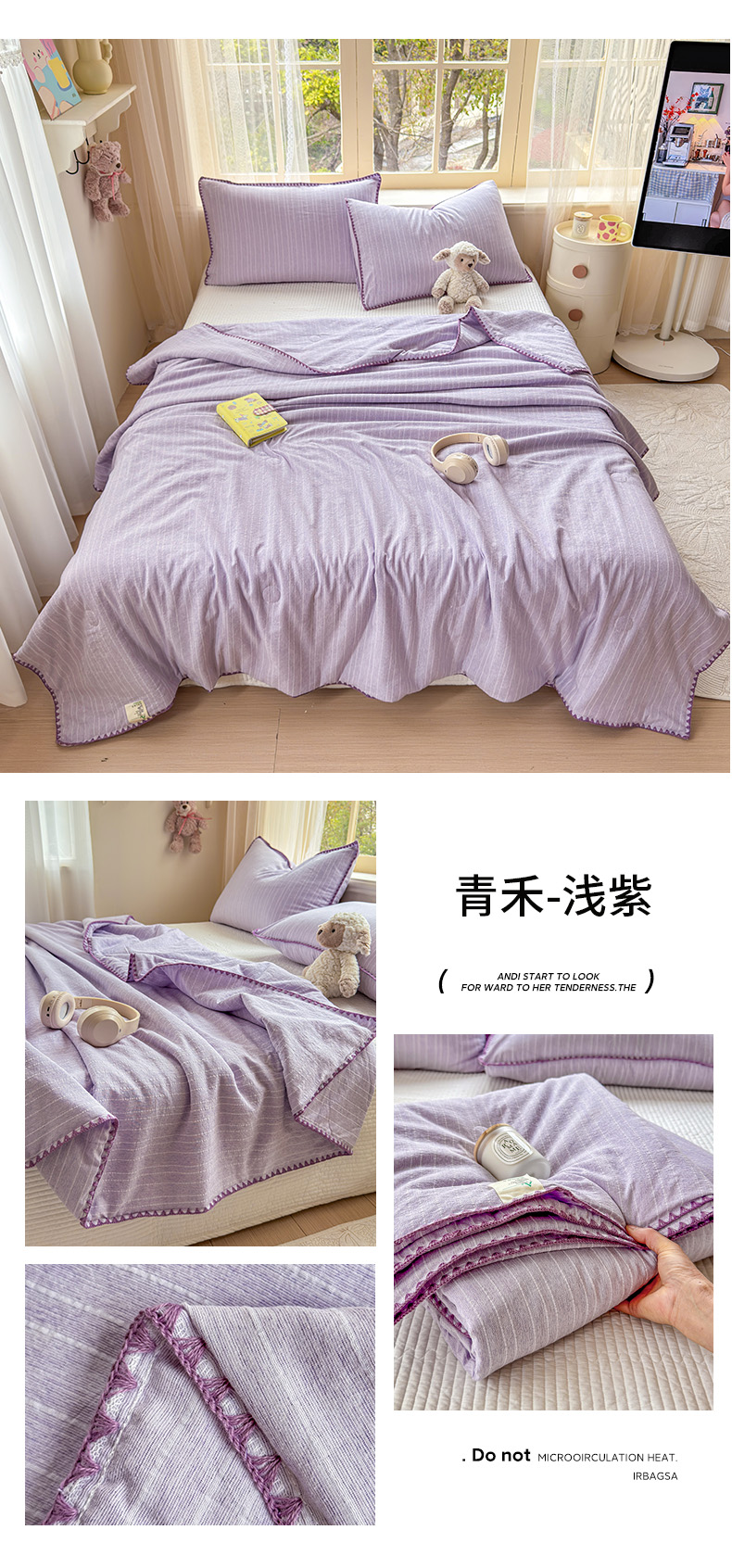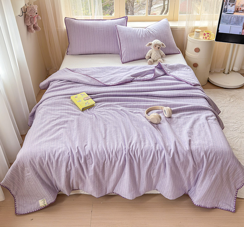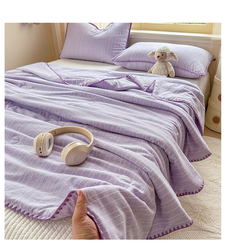 被子 > 夏被 > 鑫利来家纺 2026新款纯色无印风夏被简约素色法式麻夏凉被阳离子色织提花单人双人学生夏凉被-场景二 青禾-浅紫