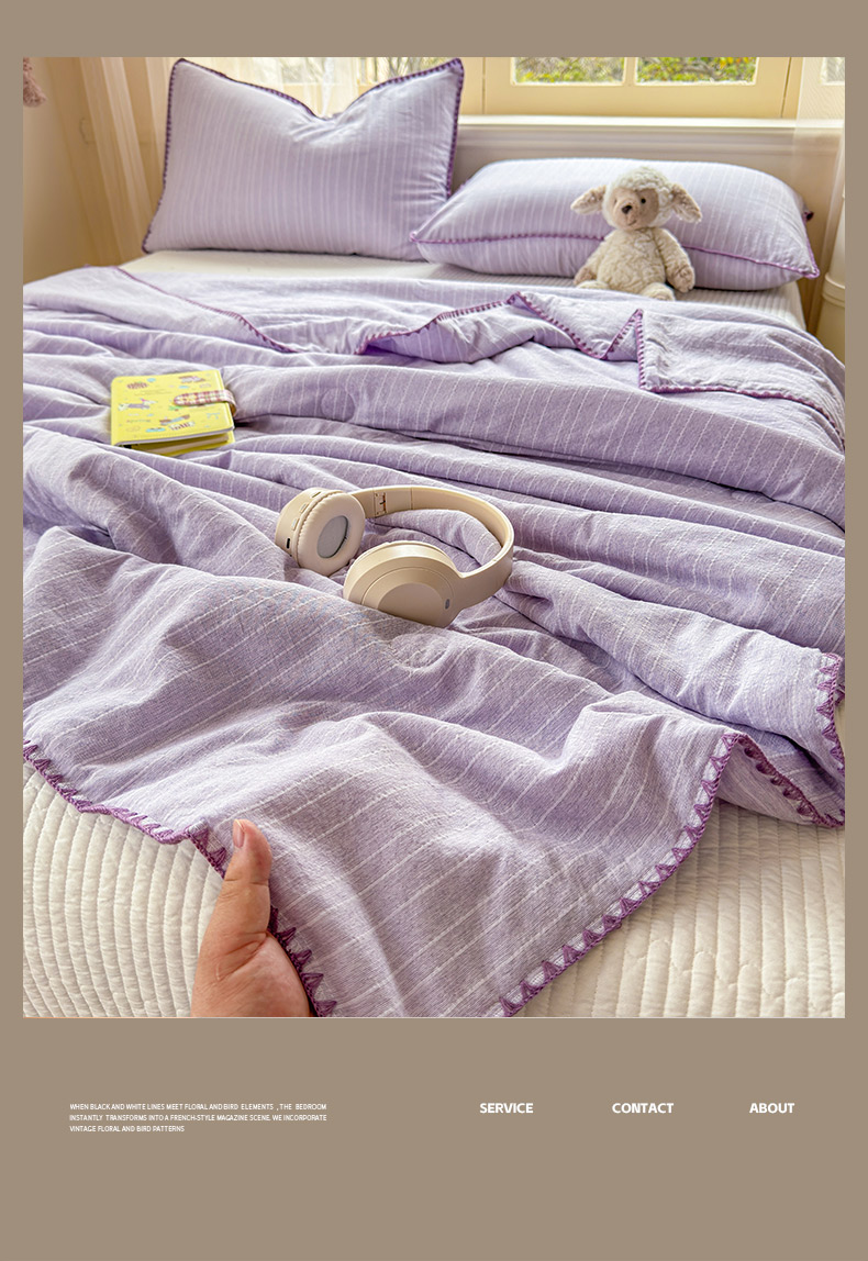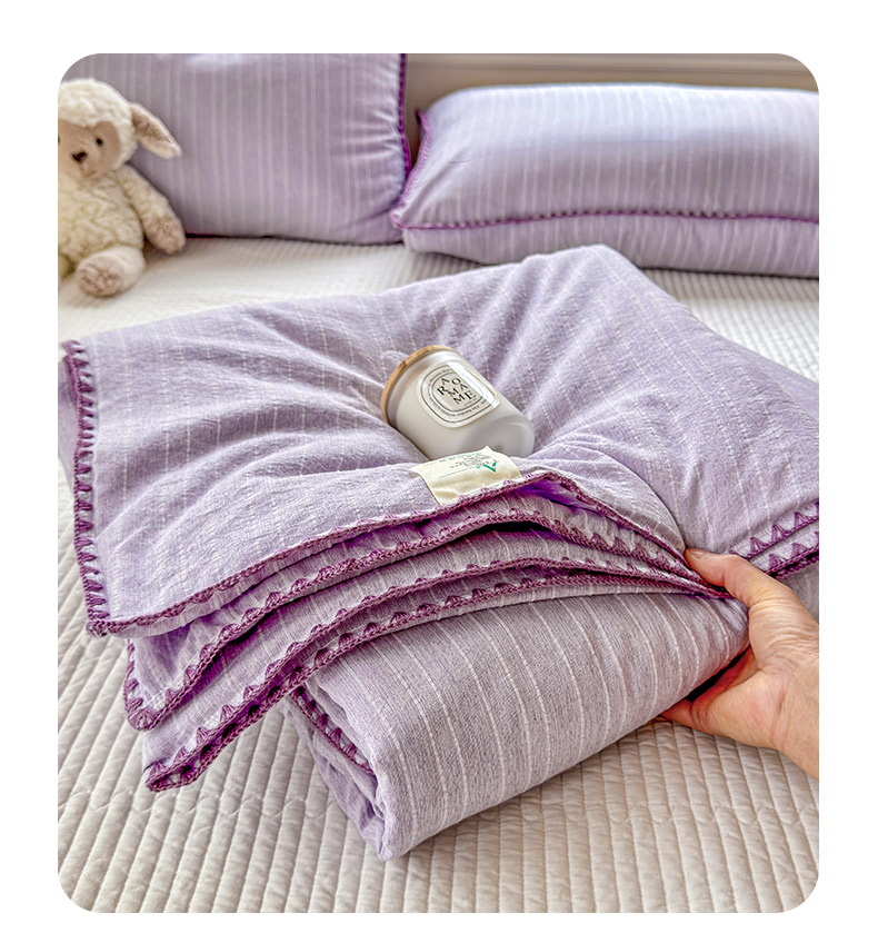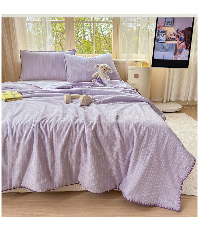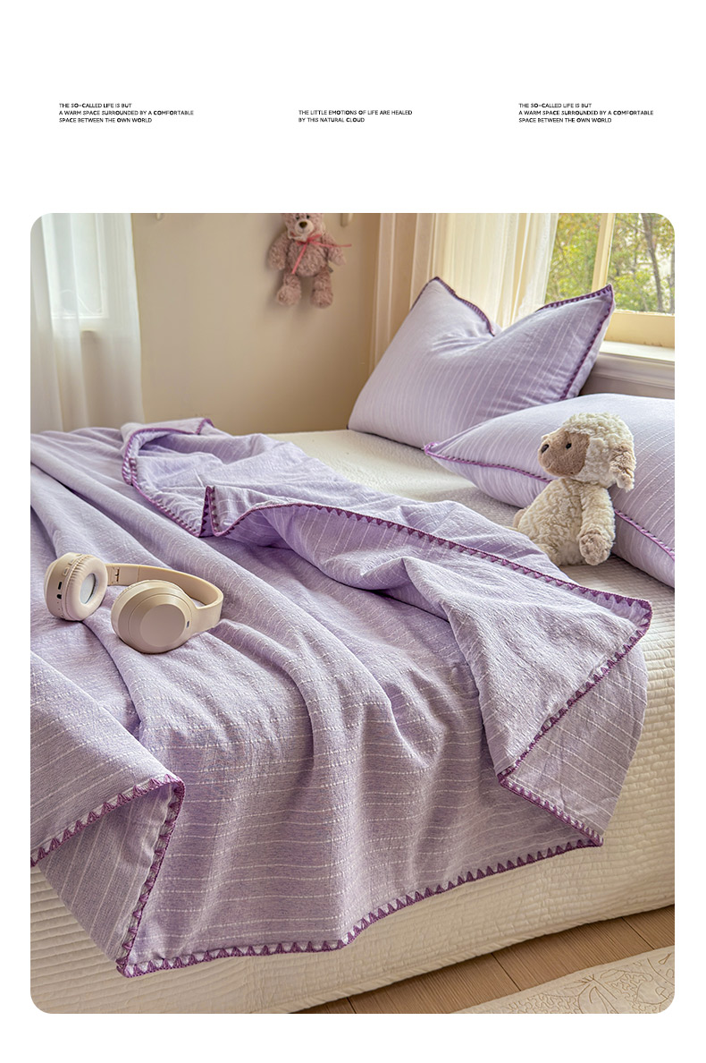 被子 > 夏被 > 鑫利来家纺 2026新款纯色无印风夏被简约素色法式麻夏凉被阳离子色织提花单人双人学生夏凉被-场景二 青禾-浅紫