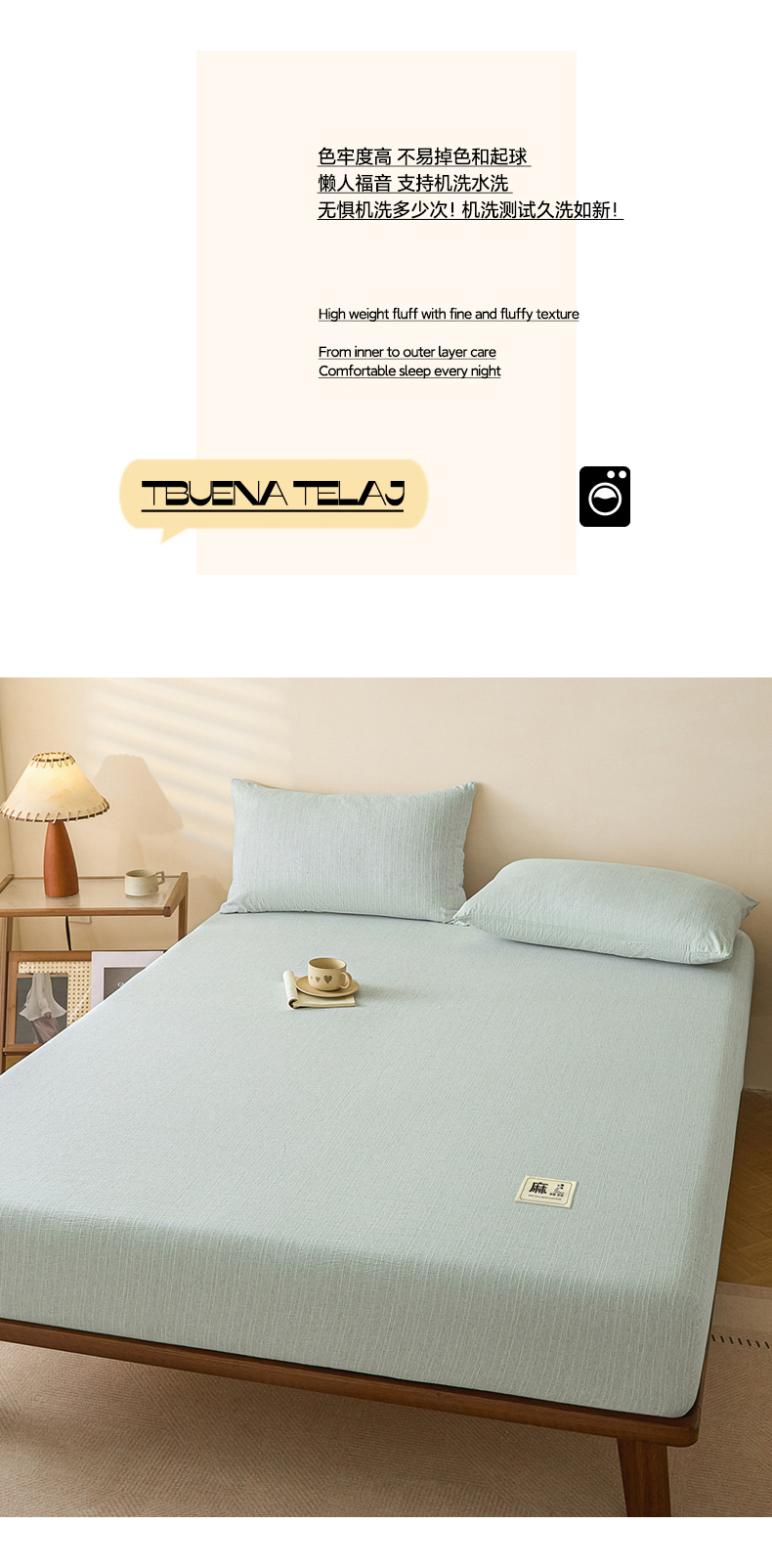 • 91家纺网 家纺一手货源 找家纺 (总)蓝极人 2026新款提花色织水洗麻床笠,CL抹茶绿,CL晨曦黄,CL湖水蓝,CL玫瑰粉,CL葡萄青,CL烟灰,LC牛仔蓝