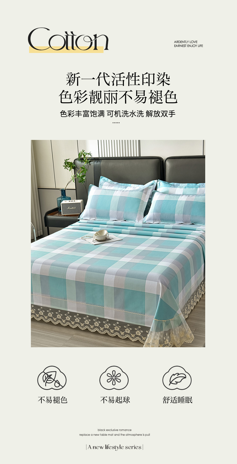 (总)星窝家纺 2025新款水洗棉花边床裙式多功能床盖三件套,经典豆绿,经典粉色,经典灰色,经典橘色,经典蓝色,经典奶白,经典紫色