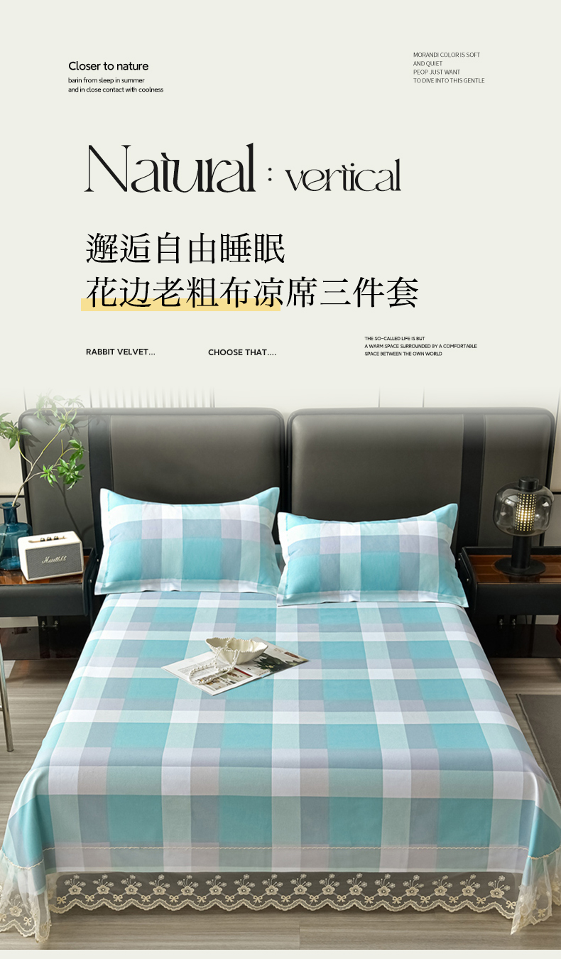 (总)星窝家纺 2026新款花边老粗布凉席三件套,半亩花田,花暖迎春,沁风花巷,浅灰雅格,山樱漫语-灰,绮梦韵彩,嘉百丽-绿,宛若黎光-绿,花叶扶苏-绿,花叶扶苏-灰,青春活力-蓝,微澜,春旭日-灰,香颂花影-绿,春风里-绿,初恋心语,星辰-灰,潮流字母-灰,半夏花语,若瑄,烟紫花影,阳春之歌,樱桃格-绿