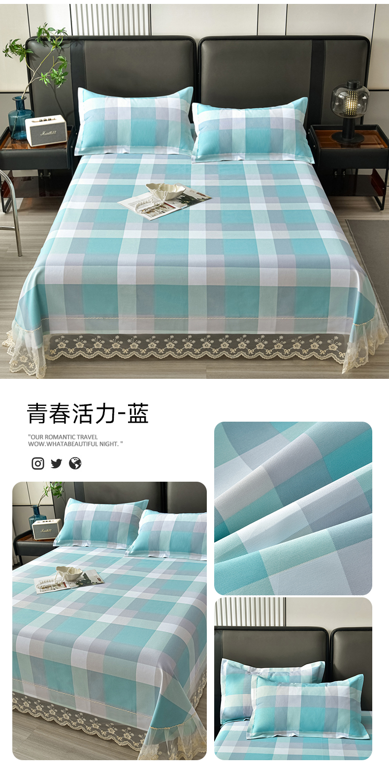 商品名称:星窝家纺 2026新款花边老粗布凉席三件套 青春活力-蓝