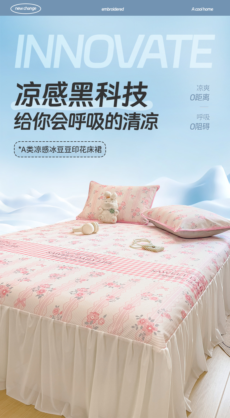 莱米家纺 2026新款斜纹凉感床裙冰豆豆系列 萌宠甜兔