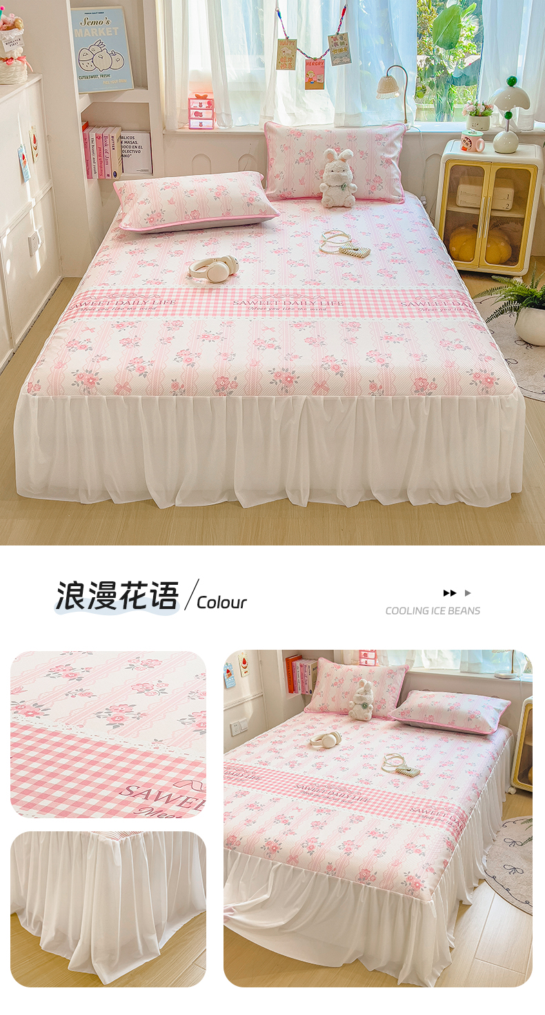 (总)莱米家纺 2026新款蕾丝花系列冰豆豆床裙,花漾-粉,花漾-灰,花漾-卡其,花漾-蓝,花漾-绿,花漾-米黄,花漾-紫