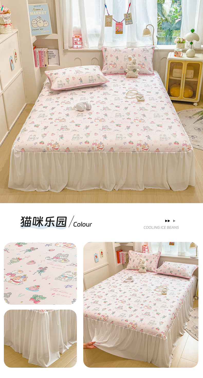 (总)莱米家纺 2026新款斜纹凉感床裙冰豆豆系列,豹纹小猫,彩色木马,从草集,花朵小猫,花仙子,兰花小兔,蓝格小狗,浪漫花语,猫猫宴会,猫咪乐园,萌宠甜兔,泡芙小狗,条纹小熊,小南瓜,叶子小熊
